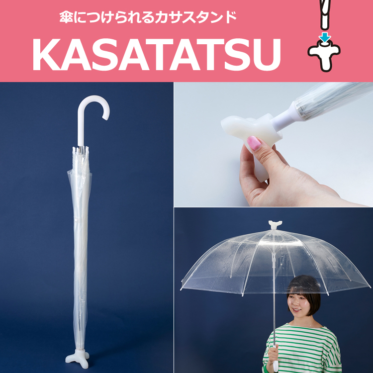 ![]() ![]() カバンから物を取り出す時、両手を使いたいけれど、傘を持っているので片手しか使えない! 本屋さんで立ち読みする時、両手を使いたいけれど、傘を持っているので片手しか使えない! 傘を持っていて不便に感じる時はよくありますよね。 そんな悩みを解決してくれる アイデアグッズが登場しました。 スマイルキッズの新商品「KASATATSU」です。 傘の先端に取り付けるだけで、傘が自立します。 スマイルキッズと学生との共同開発で生まれた商品です。 ![]() 足がついたとても不思議な形。 こちらを傘の先端に取り付けるだけ! ![]() 傘の先端の大きさが、直径約1.5?1.7cm、長さが約3cm以上の傘でしたらどれでもKASATATSUを装着することができます。 ![]() 重くならないよう、軽量化にもこだわっていますので、装着したままのご使用も問題ありません。 ![]() 材質は シリコーンゴムで、重量は 約54gです。 ![]() この重さなら、負担なく楽に傘を差すことができます。 ![]() 病院の待合いやカフェ、スポーツ観戦、ペットの散歩、音楽鑑賞など、傘を持ち歩いていて置き場に困ったときにKASATATSUを使えば、傘が倒れず自立するので傘がかさばる不便さから解放されます。 |