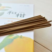 「和柑」は、天然茶葉を配合しています。蓋を開けるとすっきりとした柑橘の香りが優しく広がります。茶葉に含まれるカテキンには、消臭効果があることが知られていますので、柑橘系の香りに包まれながら、同時に消臭もできるお線香です。お仏壇をリビングに設置されている方など、香りを気にせずにご利用頂けると、大変好評頂いておりますお線香です。