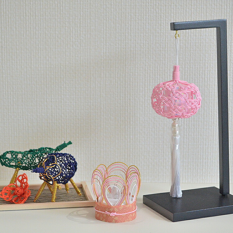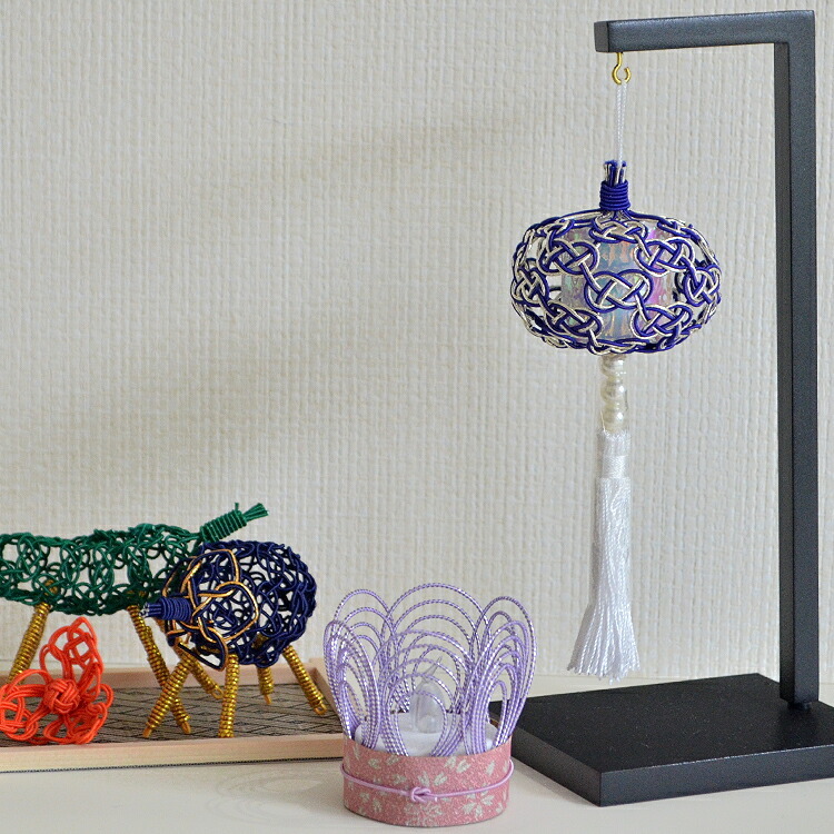 ![]() ![]() 「水引」の起源は遠く飛鳥時代にまでさかのぼると言われており、江戸時代には広く庶民のあいだにも広まっていったと言われています。 慶弔の金封などに使われている馴染みのある素材です。 相手を思う心が伝わる「水引」は、 日本人の風習として根付いています。 水引の持っている素材の「和」の心 「結」の技 水引の持つ曲線の「美」 先人からの「匠」の技を用いて創り上げられた水引の新しい形です。 ![]() ![]() 水引をひとつひとつ心を込めて丁寧に結び仕立てられたミニ盆飾りです。 盆提灯・LEDの灯明・牛馬とほおずき すべてが水引を使った手作り品です。 ![]() ![]() 吊り下げタイプの小さな提灯です。 吊り下げ台は、底板に棒を差し込むようになっています。 提灯は、ラメ入の白の水引を編んで仕立てられています。 水引の技工を凝縮した小さな盆提灯です。 (台サイズ:約横巾8cm×縦11cm×高さ27.7cm) ![]() ![]() ![]() ![]() 白と金の水引を用いて作った手のひらサイズの小さな灯明です。 ろうそくの炎のゆらぎのように灯りは点滅します。 LEDのライトを使い、倒れても安心な構造になっています。 底部分にスイッチがあります。 点灯確認用のテスト電池が付属されておりますがあくまでの点灯確認用の電池です。 ライトがつかなくなったり、暗くなった時は、電池交換をお願いします。 電池は、リチウムボタン電池CR2032をご使用ください。 (底径約4.2×花びら部分幅約8×高さ約4cm) ![]() ![]() ![]() ![]() すべて水引で作られた牛馬とほおずきです。 小さなお盆付き(約 巾11.5cm×縦8.5cm) 牛馬は、ご先祖様が極楽浄土と現世との行き帰りにお使いになります。 ほおずきは、迷うことなく帰って来て頂くための提灯の代わりと言われています。 ![]() ![]() ご先祖様の霊が一刻でも早く来て頂きたいという思いから、 速い馬をお迎えの乗り物とされました。 一般的には、馬に見立てた「きゅうり」を使いますがその「きゅうりの馬」を水引で作っています。 (約長さ8.5×幅4×高さ6.5cm) ![]() ![]() ご先祖様の霊がゆっくりと帰ってもらうという気持ちから、遅い牛を送りの乗り物とされました。 一般的には、牛に見立てた「茄子」を使いますがその「茄子の牛」を水引で作っています。 (約長さ6.5×幅3.5×高さ5cm) ![]() ![]() ほおずきは、お盆の仏壇や棚の飾りにすることで、ご先祖様が迷わず戻られるための目印にします。 また、亡くなられた方には体というものがないので、ほおずきや提灯などの中が空洞になっているものに宿ってお盆を過ごされるという説もあるそうです。 今回は、水引でほおずきを作っています。 (約幅4×長さ4.5cm) ![]() ![]()