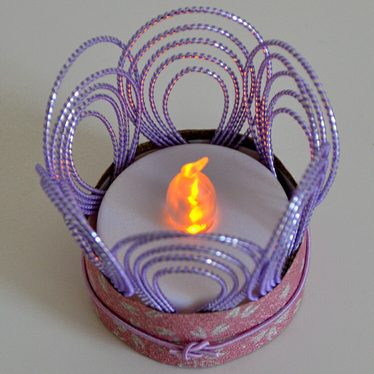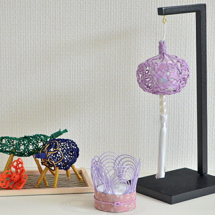 ![]() ![]() 「水引」の起源は遠く飛鳥時代にまでさかのぼると言われており、江戸時代には広く庶民のあいだにも広まっていったと言われています。 慶弔の金封などに使われている馴染みのある素材です。 相手を思う心が伝わる「水引」は、 日本人の風習として根付いています。 水引の持っている素材の「和」の心 「結」の技 水引の持つ曲線の「美」 先人からの「匠」の技を用いて創り上げられた水引の新しい形です。 ![]() ![]() 水引をひとつひとつ心を込めて丁寧に結び仕立てられたミニ盆飾りです。 盆提灯・LEDの灯明・牛馬とほおずき すべてが水引を使った手作り品です。 ![]() ![]() 吊り下げタイプの小さな提灯です。 吊り下げ台は、底板に棒を差し込むようになっています。 提灯は、桔梗銀の水引を編んで仕立てられています。 光の具合で、紫が強調されたり、薄紫や薄桃色にも見えたりします。 水引の技工を凝縮した小さな盆提灯です。 (台サイズ:約横巾7cm×縦9cm×高さ19.5cm) ![]() ![]() ![]() ![]() 薄紫の水引を用いて作った手のひらサイズの小さな灯明です。 ろうそくの炎のゆらぎのように灯りは点滅します。 LEDのライトを使い、倒れても安心な構造になっています。 底部分にスイッチがあります。 点灯確認用のテスト電池が付属されておりますがあくまでの点灯確認用の電池です。 ライトがつかなくなったり、暗くなった時は、電池交換をお願いします。 電池は、リチウムボタン電池CR2032をご使用ください。 (約径約4.2cm×高さ約5cm) ![]() ![]() ![]() ![]() すべて水引で作られた牛馬とほおずきです。 小さなお盆付き(約 巾11.5cm×縦8.5cm) 牛馬は、ご先祖様が極楽浄土と現世との行き帰りにお使いになります。 ほおずきは、迷うことなく帰って来て頂くための提灯の代わりと言われています。 ![]() ![]() ご先祖様の霊が一刻でも早く来て頂きたいという思いから、 速い馬をお迎えの乗り物とされました。 一般的には、馬に見立てた「きゅうり」を使いますが その「きゅうりの馬」を水引で作っています。 (約長さ8.5×幅4×高さ6.5cm) ![]() ![]() ご先祖様の霊がゆっくりと帰ってもらうという気持ちから、遅い牛を送りの乗り物とされました。 一般的には、牛に見立てた「茄子」を使いますがその「茄子の牛」を水引で作っています。 (約長さ6.5×幅3.5×高さ5cm) ![]() ![]() ほおずきは、お盆の仏壇や棚の飾りにすることで、ご先祖様が迷わず戻られるための目印にします。 また、亡くなられた方には体というものがないので、ほおずきや提灯などの中が空洞になっているものに宿ってお盆を過ごされるという説もあるそうです。 今回は、水引でほおずきを作っています。 (約幅4×長さ4.5cm) ![]() ![]()