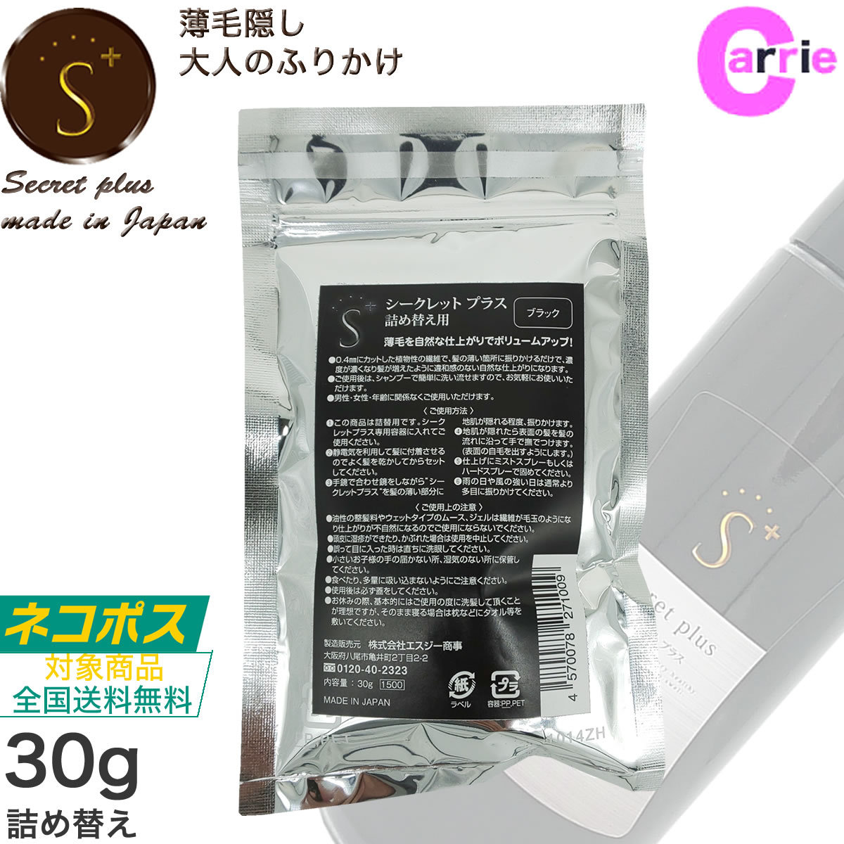 シークレットプラス 30g ブラック 詰め替えタイプ|Secrett plus シークレットパウダー|大容量 粉 薄毛隠し パウダー 頭皮 薄毛 頭髪 増毛 ネコポス 送料無料