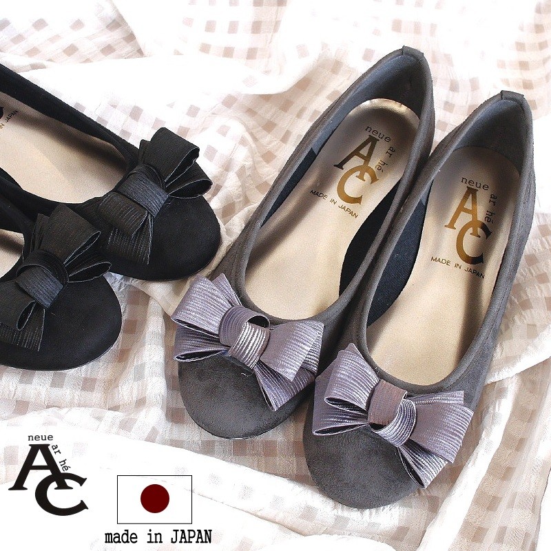 ★おススメポイント★MADE IN JAPAN・スウェード・リボンデザイン・モールドソールパンプス★