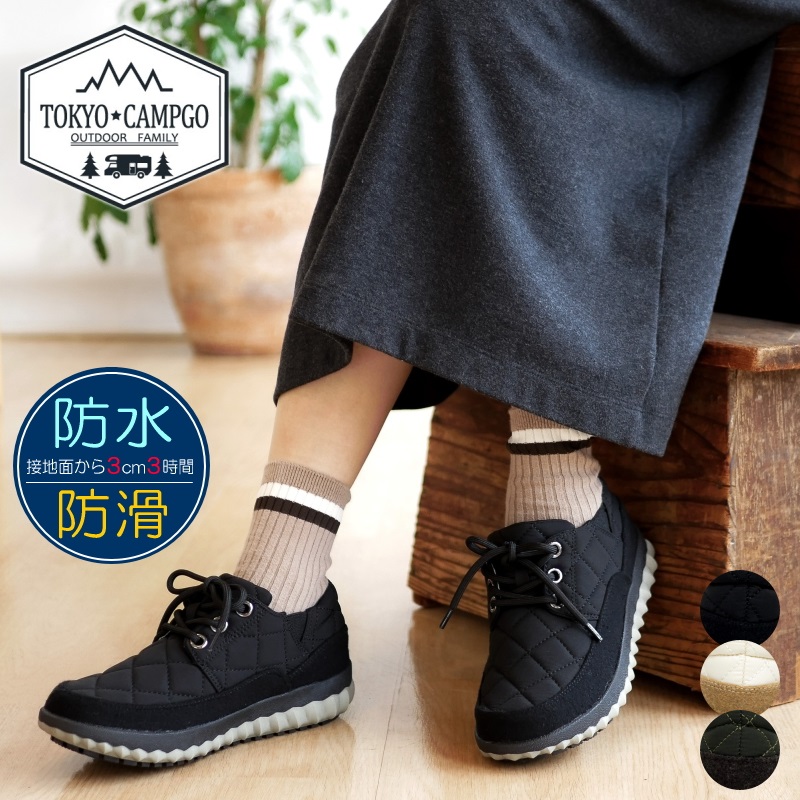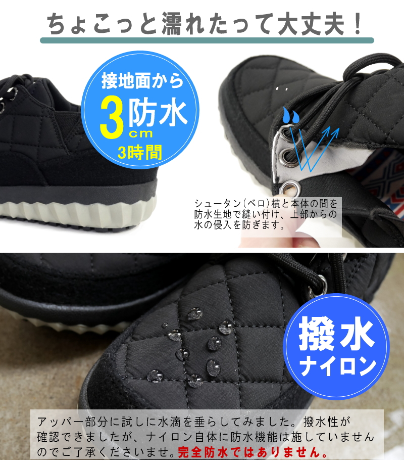 本商品は撥水ナイロン、接地面から3cmの防水機能を施しアウトソールにはグリップが効いた