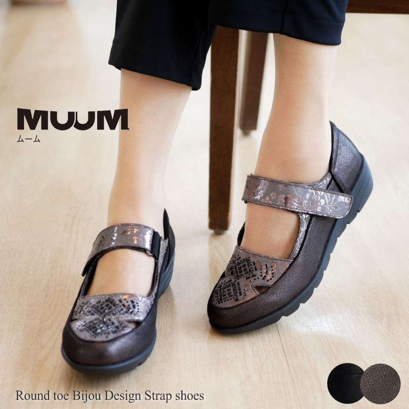 ★おススメポイント★「MUUM」ラウンドトゥ・ビジューデザイン・ストラップシューズ★