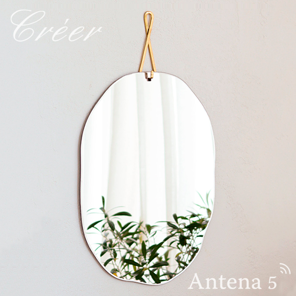 真鍮製のフックと有機的な曲線のミラー本体のセットで、壁に掛けるだけでお部屋のアクセントに。