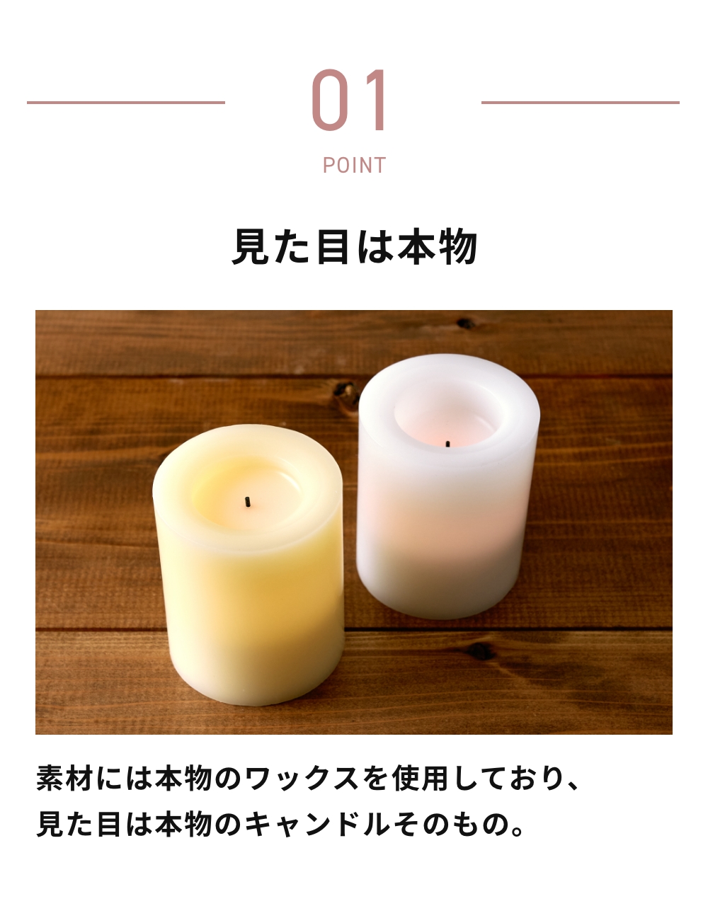 素材には本物のワックスを使用しており、見た目は本物のキャンドルそのもの。