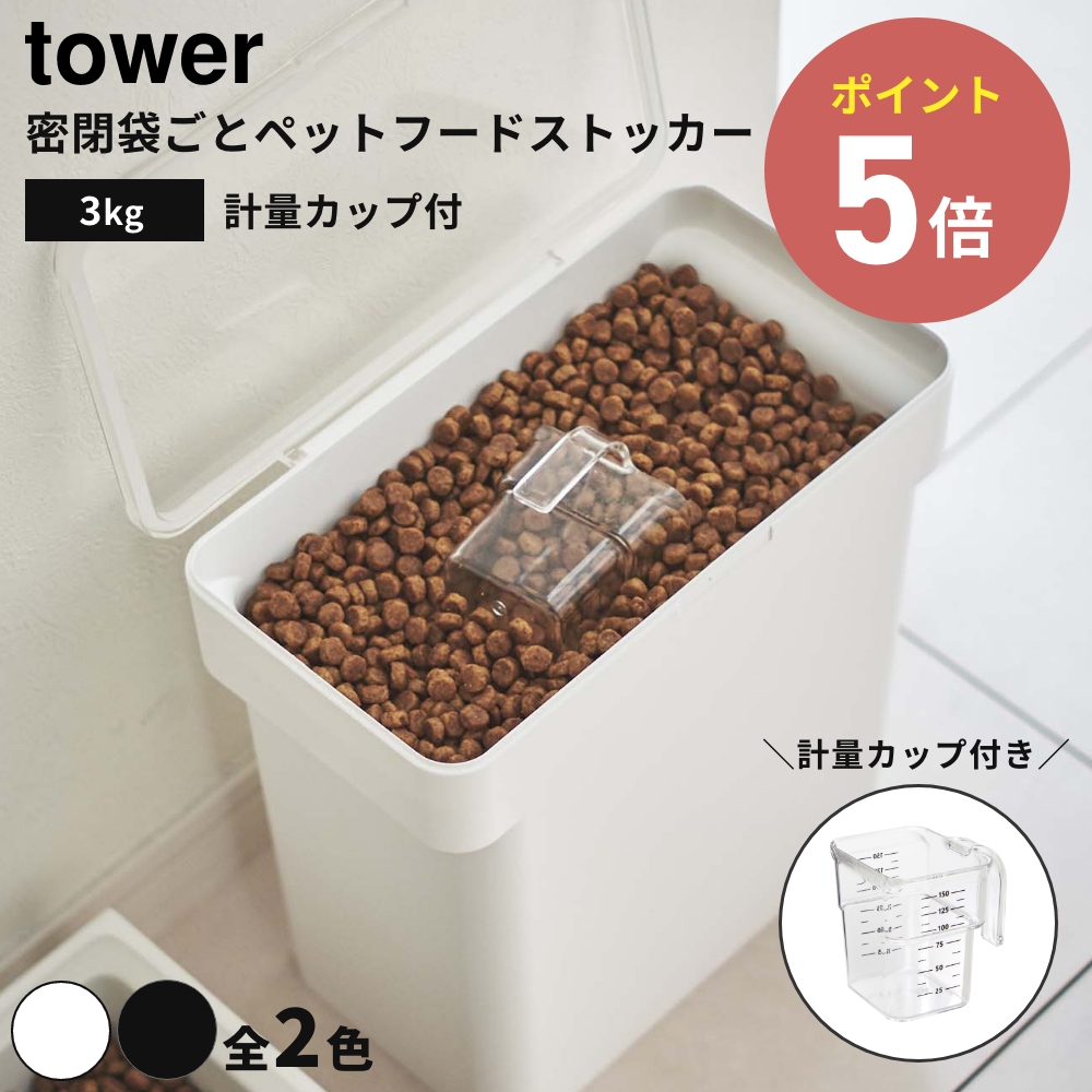 《全2色》 密閉袋ごとペットフードストッカー 3kg 計量カップ付 タワー 山崎実業 tower ペットフード ストッカー 密閉 餌 エサ 収納 密閉容器 保存容器 計量付き