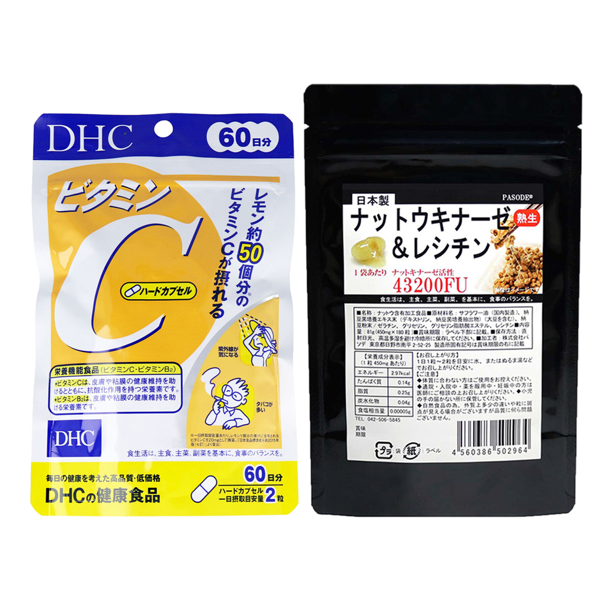 超熟生ナットウキナーゼ&レシチン 180粒 大容量6カ月分 と DHC ビタミンC 60日分の 2個セット