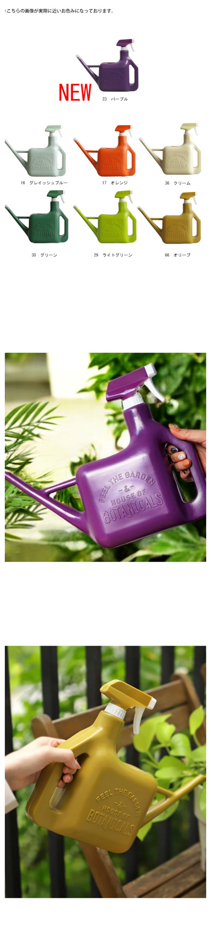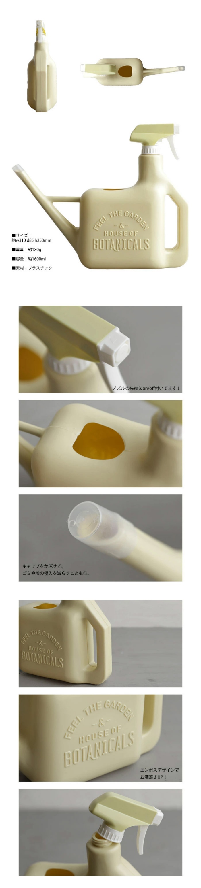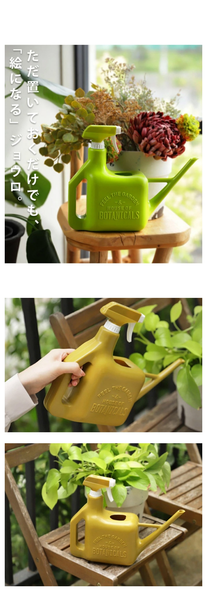 ジョウロと霧吹きが一体になった便利なデザインで、観葉植物やベランダガーデンのお手入れがこの一台で完結します。