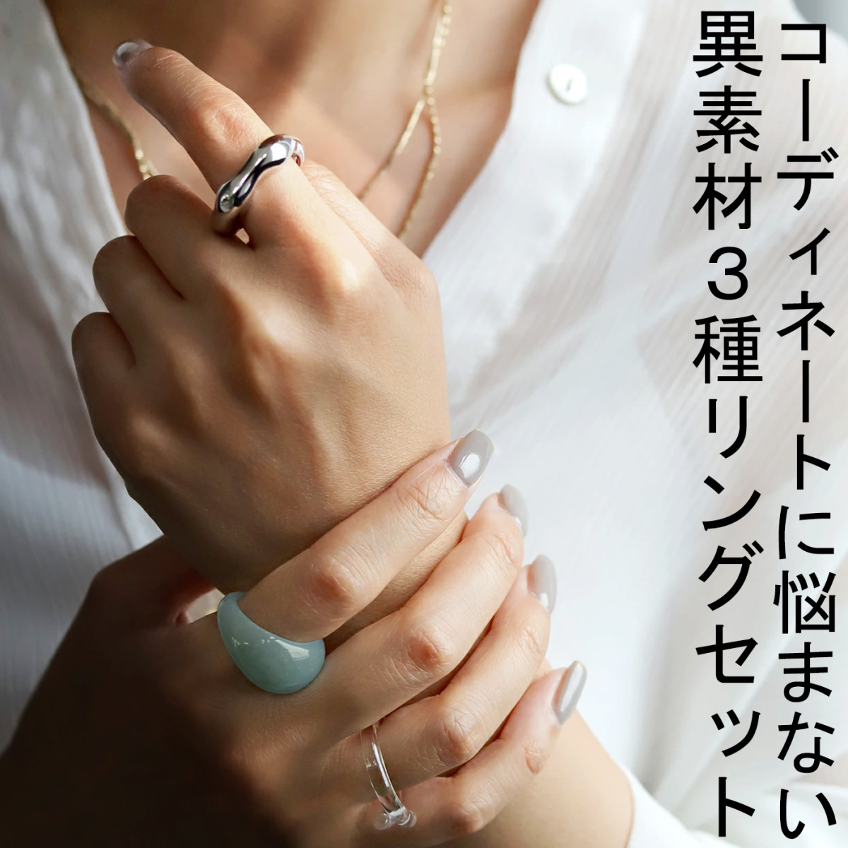 【検索ワード】異素材セットリング 指輪 レディース リング 3個セット アレルギー対応 ニッケルフリー 金属アレルギー 低アレルギー ファッションリング メタル アクリル クリア カラー セット 異素材 重ね付け カジュアル アクセサリー アクセ 結婚式 二次会 パーティー antiqua アンティカ 大人 おしゃれ 10代 20代 30代 40代 50代 60代 春 夏 秋 冬 オールシーズン お洒落 かわいい かっこいい あんてぃか