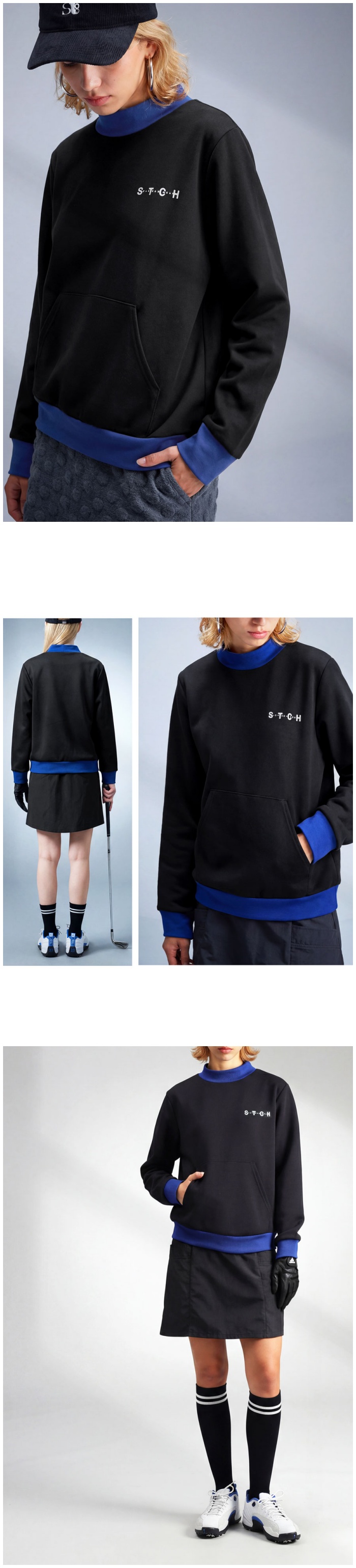 配色の切り替えが印象的な、STCH×antiquaコラボのモックネックカットソーです。