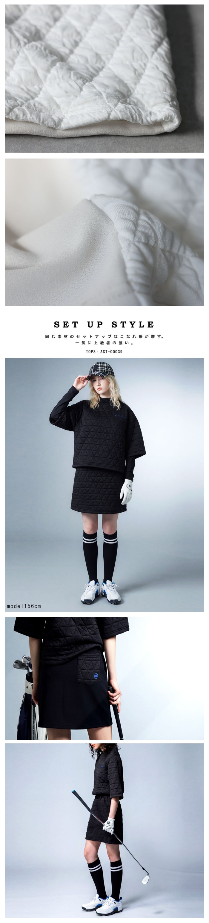 トップス品番AST-00039とセットアップ着用可能で、トータルコーデも簡単に完成。