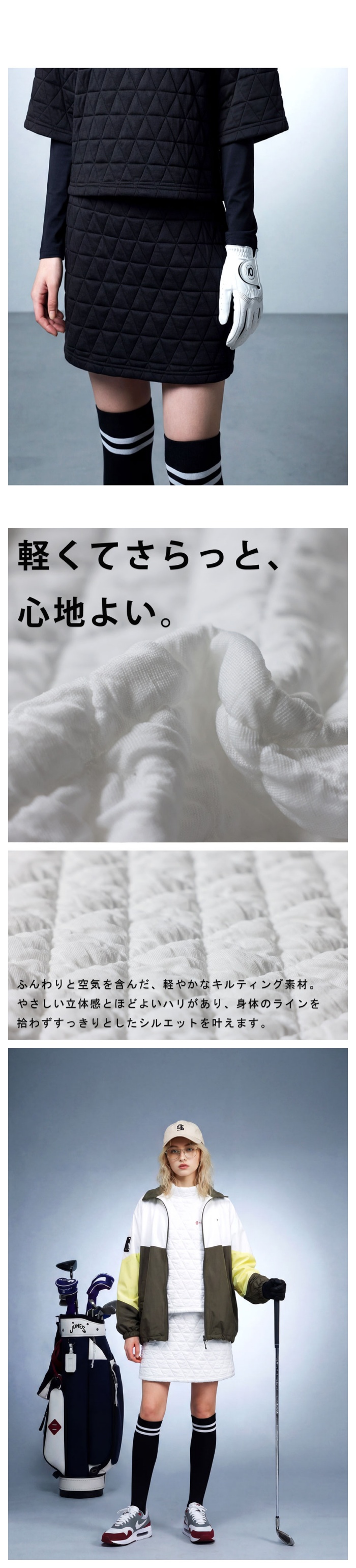 【使用シーン】ゴルフ、スポーツ、ワンマイル、お出かけ、旅行、カフェ巡り、女子会、リラックスタイム、リンクコーデ、セットアップスタイル