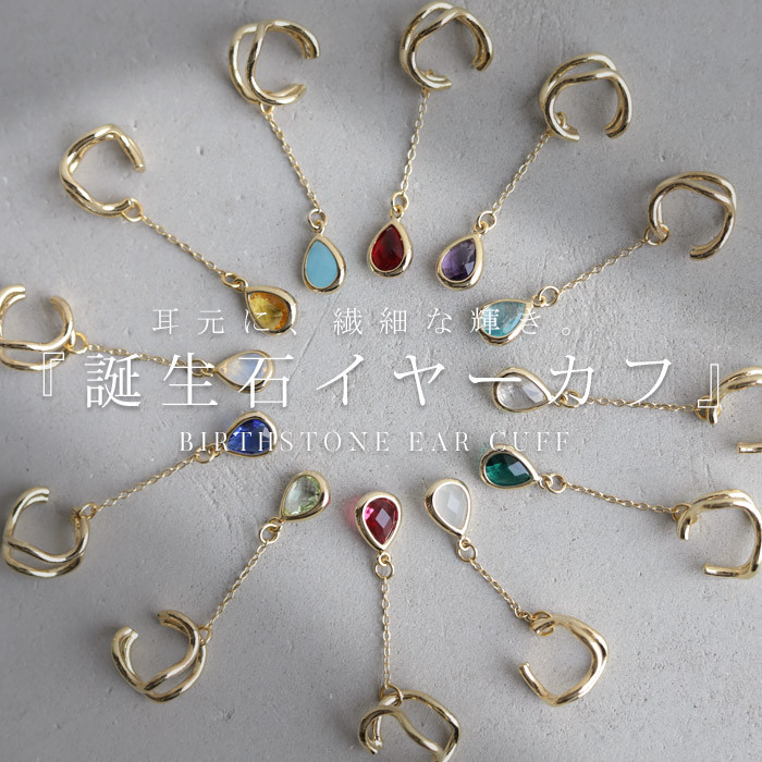 揺れる誕生石モチーフが煌めいて魅せる。デザインイヤーカフ。