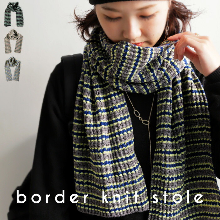 マフラー ニットストール ショール ボーダー 柄 ニット レディース おしゃれ・(10)メール便可