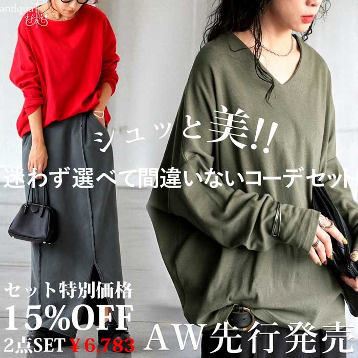 antiquaで人気の“シュッと美”シリーズトップスとスカートの2点セットが登場。