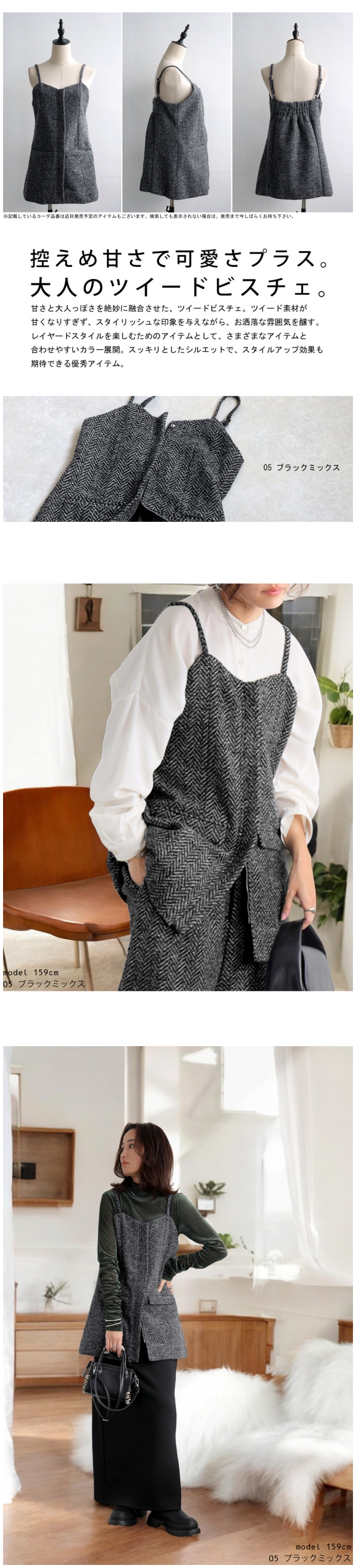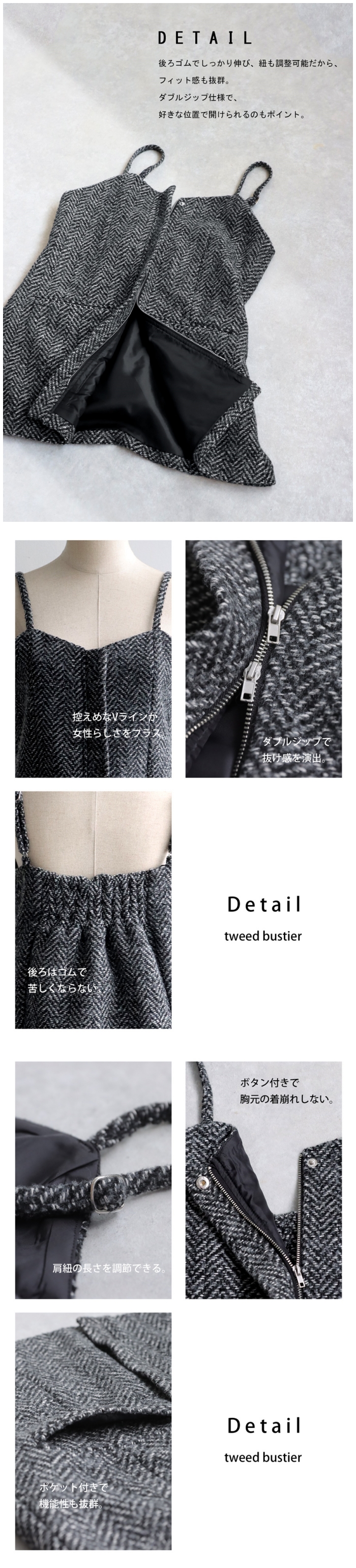 お洒落な雰囲気醸す『ツイードビスチェ』