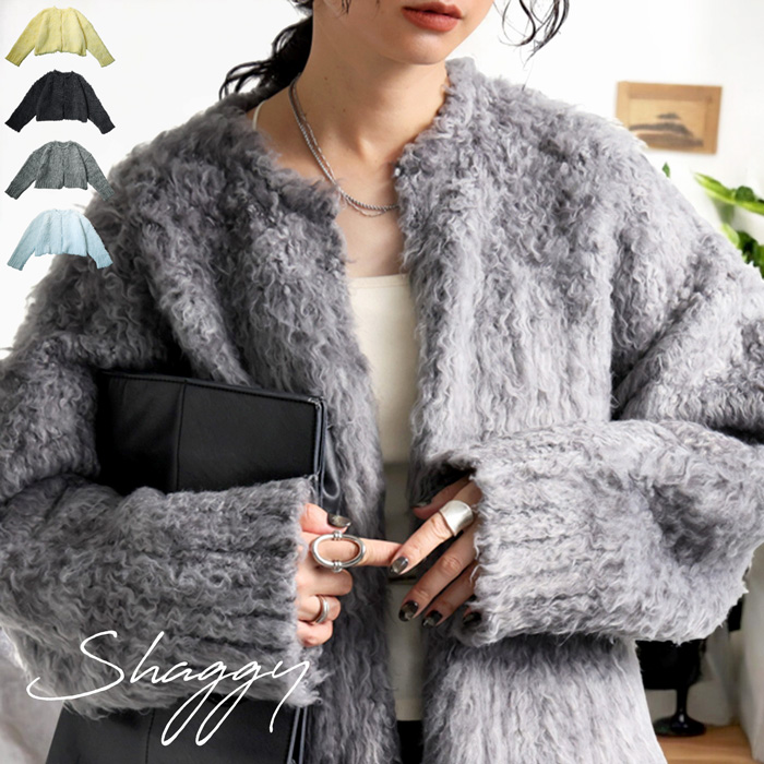 秋冬のコーデに明るい彩りを添えるシャギーニットカーディガン。