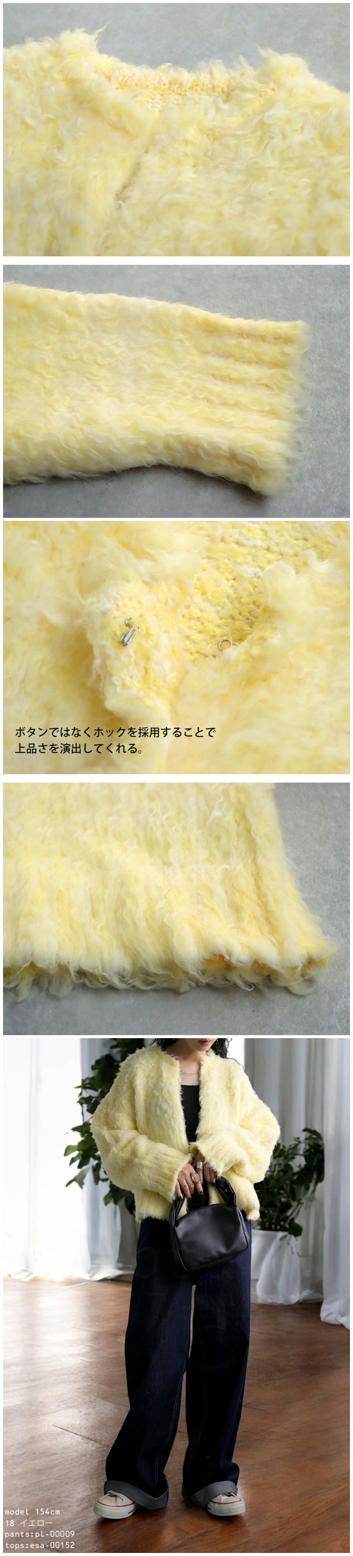 丁寧に編み上げた『シャギーノーカラーカーディガン』