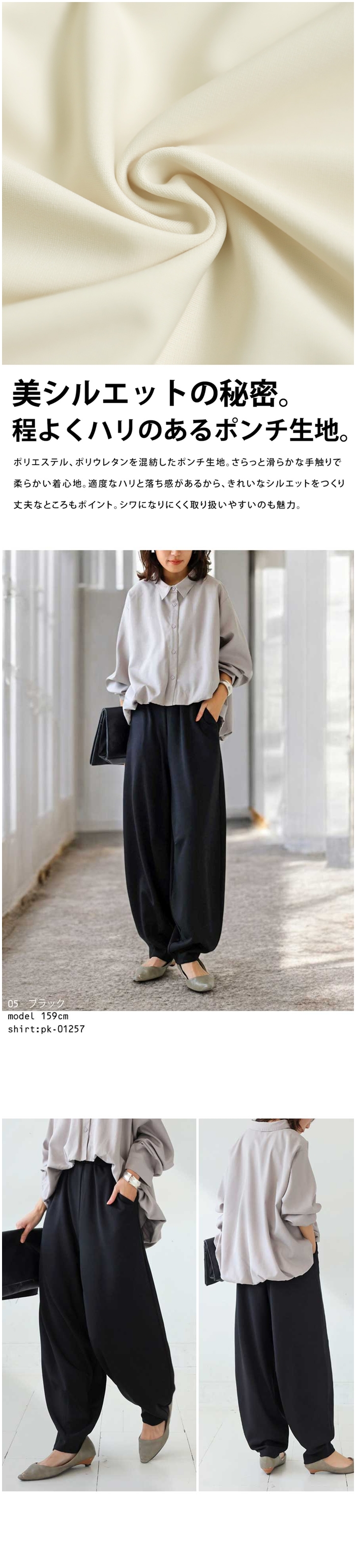 綺麗なシルエットを作り、丈夫なポンチ素材がデイリーに使いやすいパンツ。
