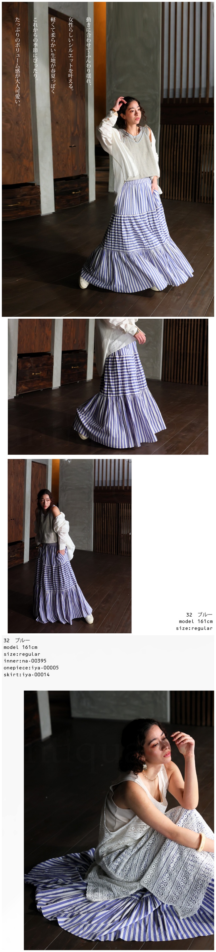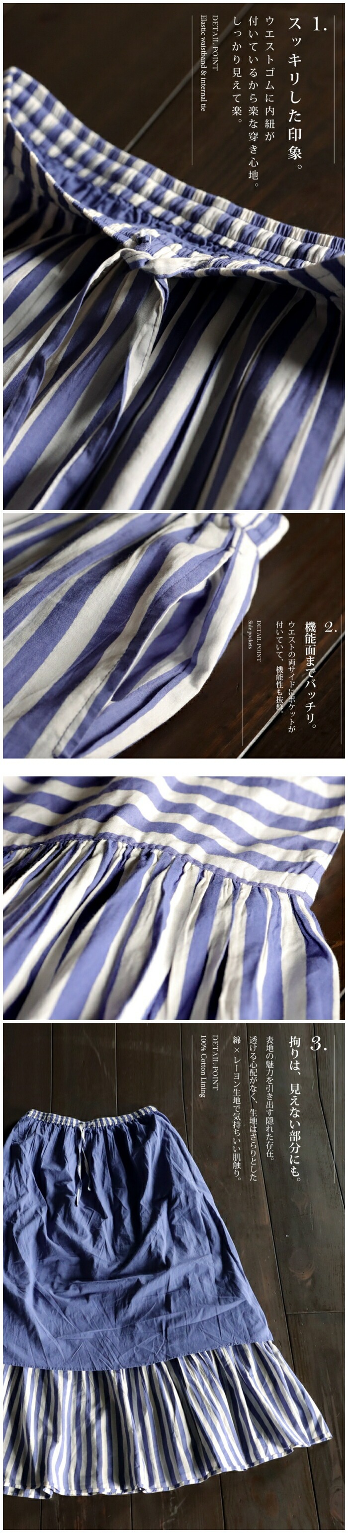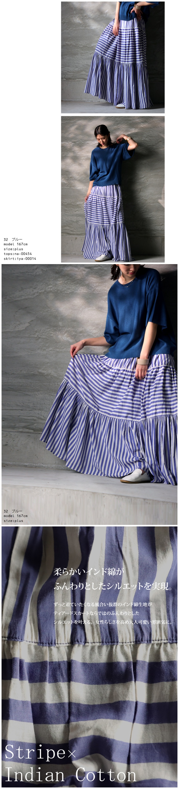 Please check the notes for this item and check this shipping note before you buy.【検索ワード】インド綿 ストライプスカート スカート レディース ボトムス ロング 柄 ストライプ柄 柄スカート 裏地付き ウエストゴム Aライン ポケット付き ギャザー フレア ティアードデザイン ゆったり サイズ展開 Regular Plus ナチュラル 高級感 シンプル 上品 綿 コットン ボリューム 体型カバー 細見え 華奢見え 大きめ 大きいサイズ ロングスカート フレアスカート ティアードスカート antiqua mulumulu アンティカ ムルムル 大人 おしゃれ 10代 20代 30代 40代 50代 60代 春 夏 お洒落 カジュアル かわいい かっこいい あんてぃか インド製 ジャイプール 繊細 手仕事 職人技