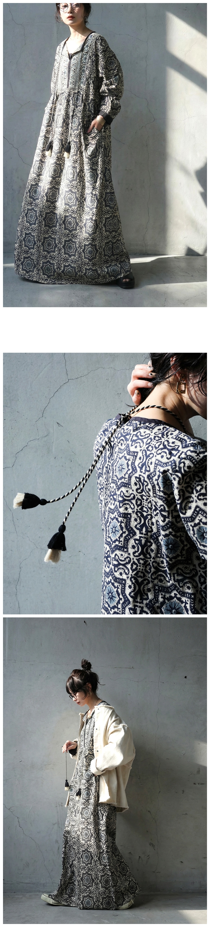 Please check the notes for this item and check this shipping note before you buy.ワンピース ロングワンピース マキシワンピース シャツワンピース 柄ワンピース プリントワンピース コットンワンピース 綿100 インド綿 インドコットン ジャイプリア ジャイプリ ジャイプール 幾何学柄 総柄 古典柄 エスニック ブロックプリント スクリーンプリント フリンジ タッセル キーネック Vネック ネックライン 前ヨーク 切替 フレア Aライン ロング丈 マキシ丈 ゆったり シルエット 体型カバー 大きいサイズ おおきい イージー らくちん リラックス ワイド ルーズ プラスサイズ プラス レディース 長袖 袖あり 春 夏 秋 春夏 SS AW オールシーズン ナチュラル カジュアル モード 大人 上品 綺麗 きれいめ キレイ シンプル 旅行 リゾート デイリー ワンマイル ショッピング カフェ 在宅 ワーク 綿素材 天然素材 通気性 軽量 柔らかい フレアワンピース ロンスカ風 マキシ ロング インド柄 アジアン ボヘミアン ブラック ブルー 黒 くろ 青 あお Black Blue S M L LL 2L 3L XL XXL フリーサイズ 大きめ 大き目 ビッグ ビック big aライン Aライン 10代 20代 30代 40代 50代 60代 婦人服 女性用 ANTIQUA antiqua アンティカ あんてぃか antique annthika あんちくあ アンテイカ あんティカ