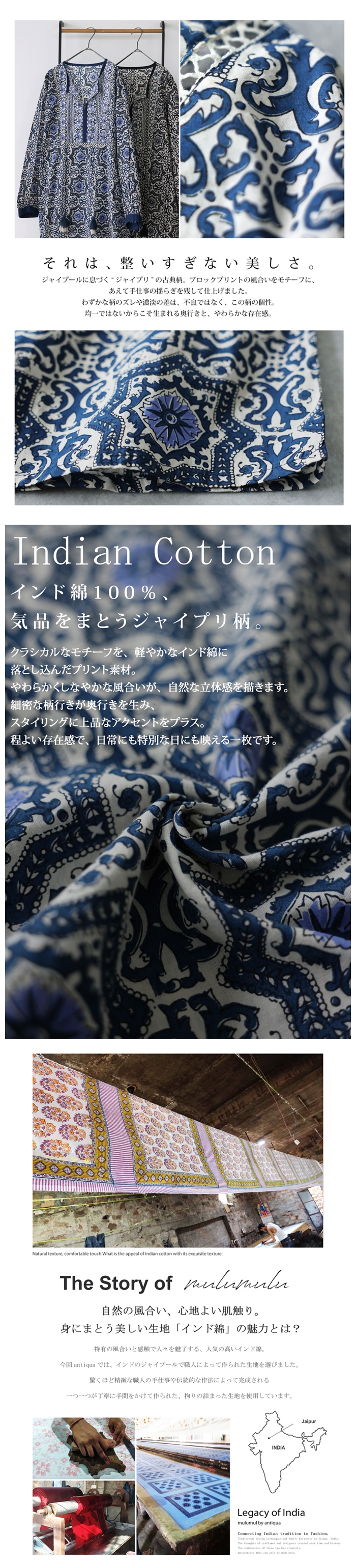 インドの伝統を感じる繊細な風合い、手仕事の刺繍にフォーカスを当てたantiqua発のブランド『mulumulu(ムルムル)』