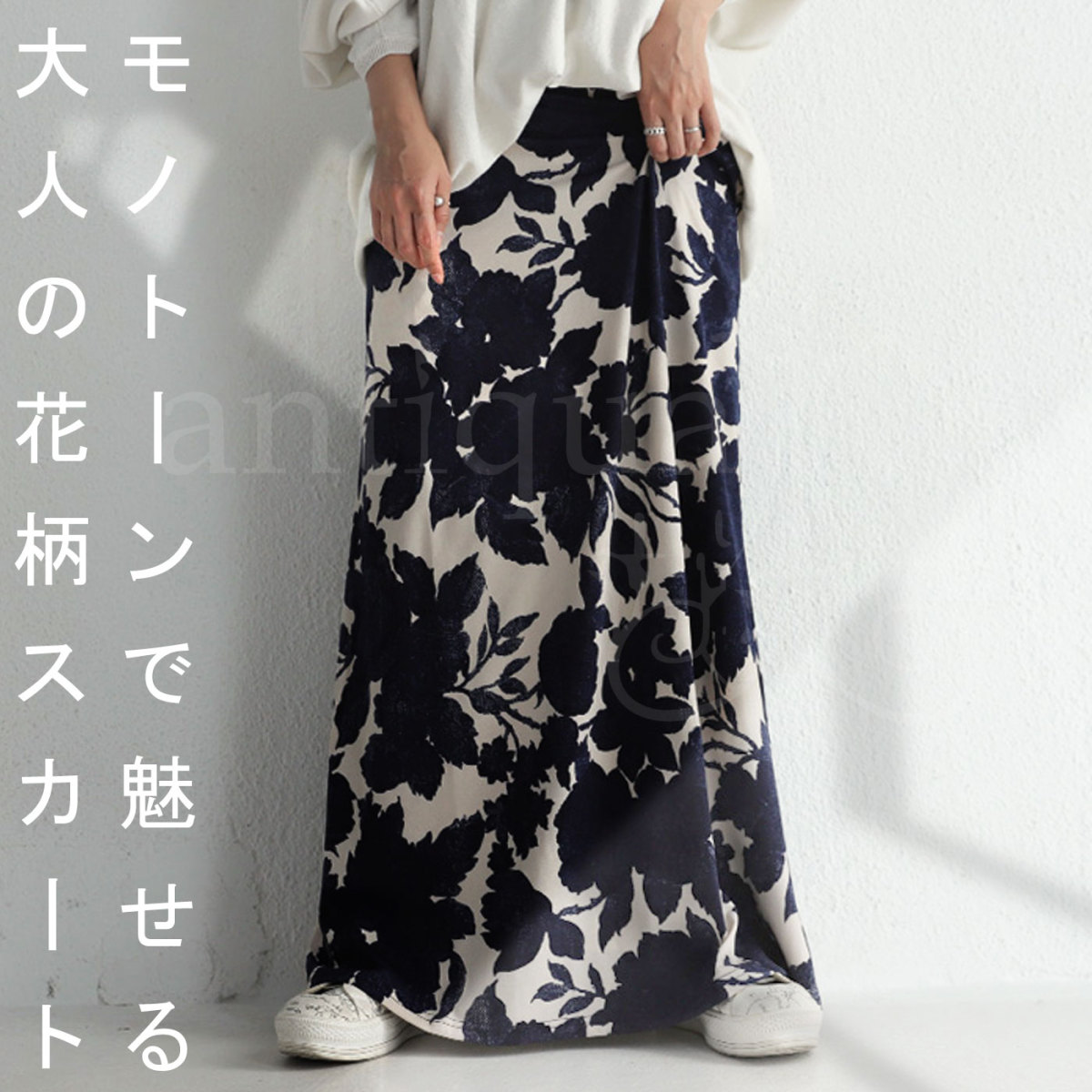 【検索ワード】花柄 ロングスカート スカート レディース ボトムス ロング 柄スカート 柄 マキシ丈 モノトーン 上品 Aライン Iライン シック 総柄 ボタニカル 裏地付き ウエストゴム ゆったり 大きいサイズ antiqua アンティカ 大人 おしゃれ 10代 20代 30代 40代 50代 60代 春 夏 秋 冬 オールシーズン お洒落 カジュアル かわいい かっこいい あんてぃか