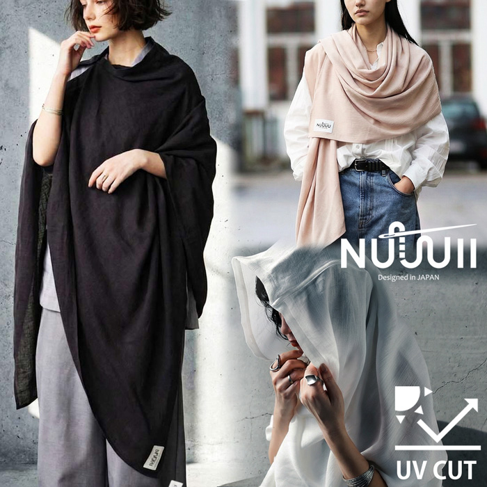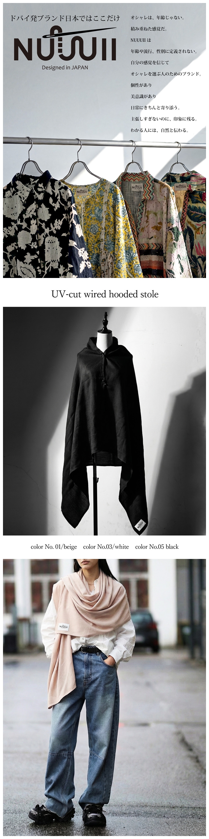 日差しから守りながら装いに個性を添える、フード付きのUVカットストールです。