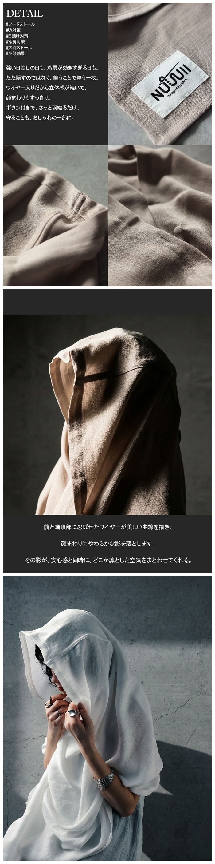 Please check the notes for this item and check this shipping note before you buy.ストール フードストール フード付きストール UVカット UV対策 日焼け対策 冷房対策 紫外線対策 羽織り ショール ケープ ポンチョ フード付き ワイヤー入り ワイヤー ロング ロング丈 大判 大判ストール ボタン付き スナップボタン 小顔効果 立体 立体シルエット シルエット ゆったり 大きいサイズ おおきい プラスサイズ プラス ワイド ルーズ リラックス イージー らくちん 体型カバー 軽量 薄手 通気性 吸湿 速乾 洗える ナチュラル モード カジュアル きれいめ キレイ 綺麗 上品 シンプル 個性的 デザイン性 春 夏 秋 春夏 秋服 レディース メンズ ユニセックス メンズライク 10代 20代 30代 40代 50代 60代 フリー 黒 ブラック 白 ホワイト ベージュ Black White Beige 日除け 日よけ 紫外線カット UVケア 冷え対策 エアコン対策 旅行 リゾート ワンマイル デイリー お出かけ ドライブ ショッピング antiqua ANTIQUA アンティカ あんてぃか antique annthika あんちくあ アンテイカ あんティカ