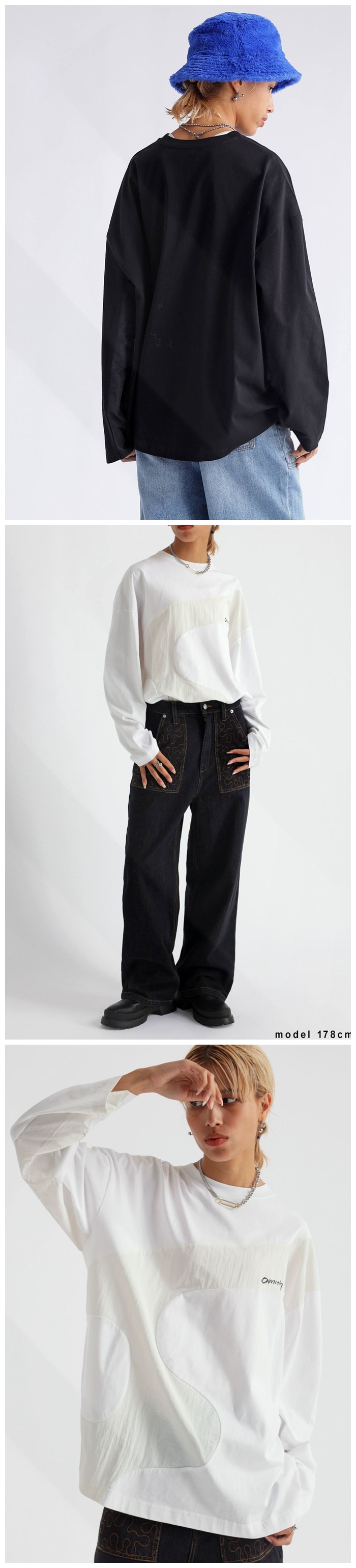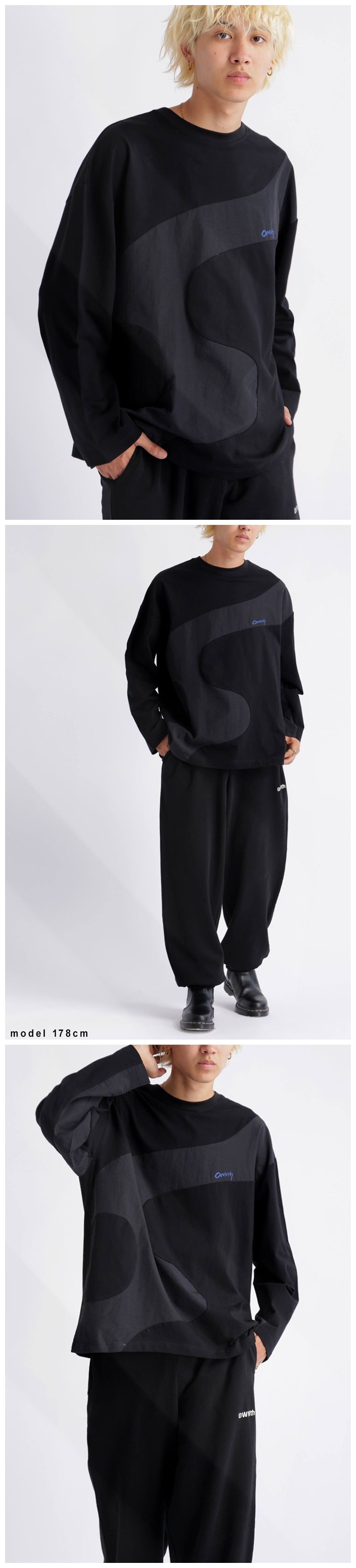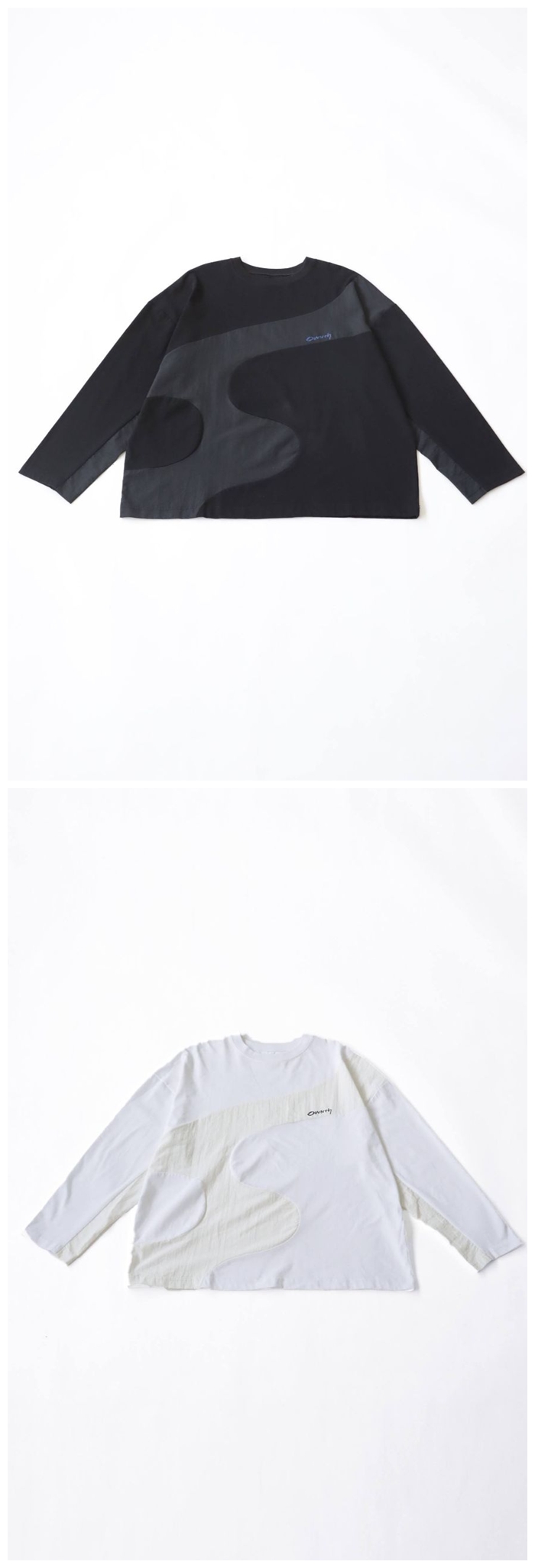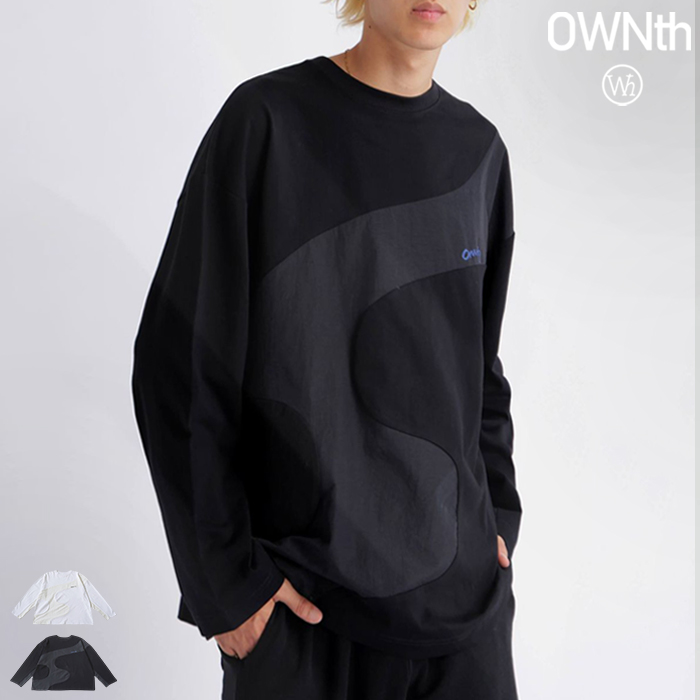 大胆なウェーブラインが印象的な、異素材ドッキングのロングスリーブTシャツ。