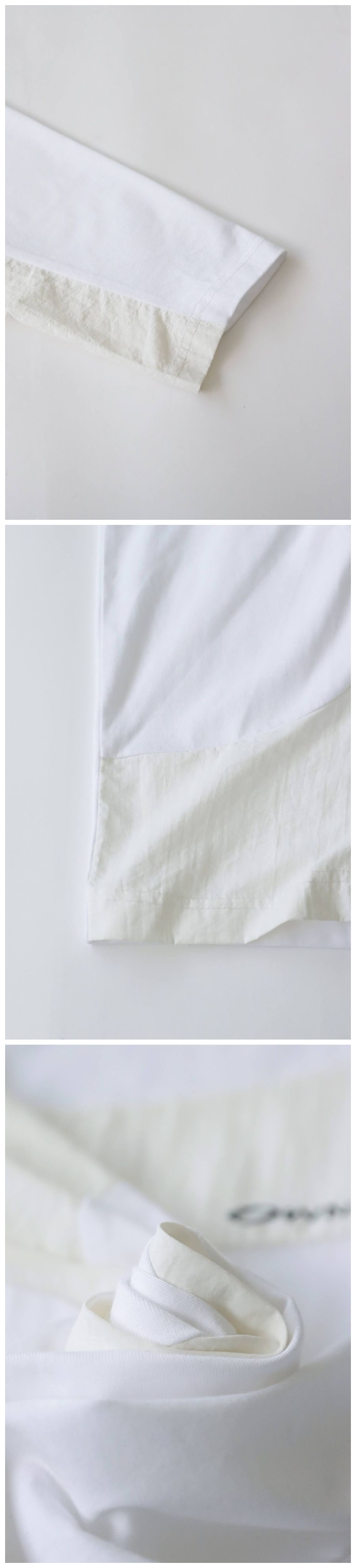 綿100%のしっかりとした天竺生地に、軽やかなナイロン素材を組み合わせた、表情豊かな1枚です。
