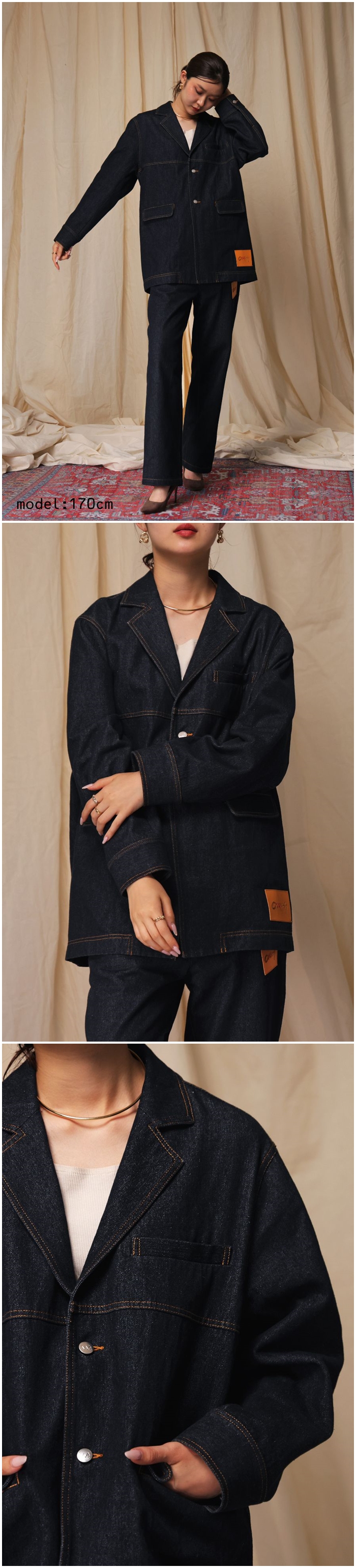 インディゴデニムを採用し、着込むごとに風合いが増す素材感が魅力です。