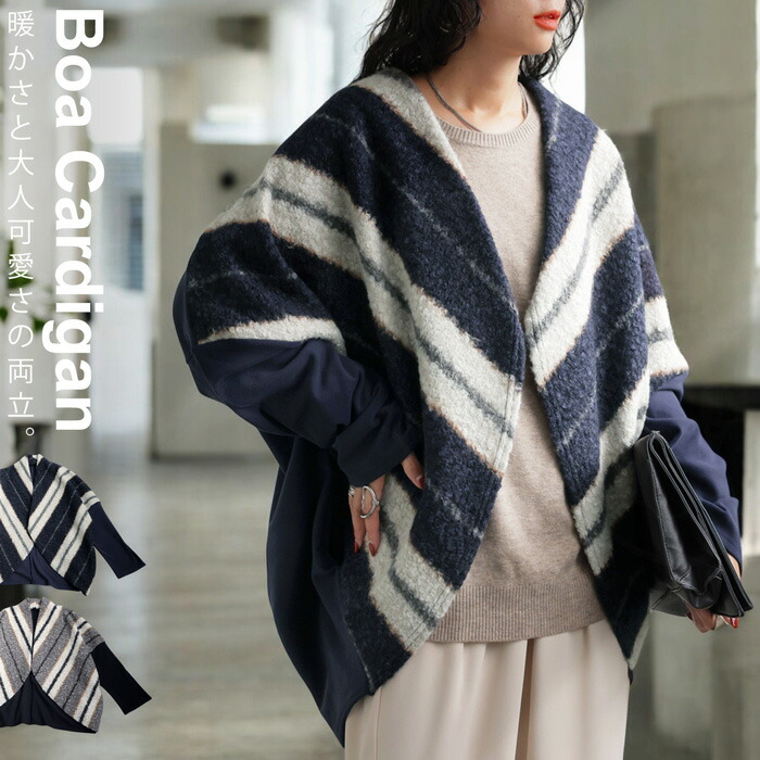 【検索ワード】ボア切り替えカーデ カーディガン レディース トップス 羽織り 長袖 トッパーカーデ 縞 ストライプ柄 柄トップス 柄 ボア 無地 切り替え ドッキング 立体感 もこもこ ふわふわ ふんわり 前後差 コクーンシルエット コクーン 前開き ポケット付き Vネック ノーカラー ゆったり シンプル きれいめ 伸縮性 ストレッチ 体型カバー 細見え 着痩せ 大きめ 大きいサイズ 軽アウター ライトアウター antiqua アンティカ 大人 おしゃれ 10代 20代 30代 40代 50代 60代 秋 冬 お洒落 カジュアル かわいい かっこいい あんてぃか