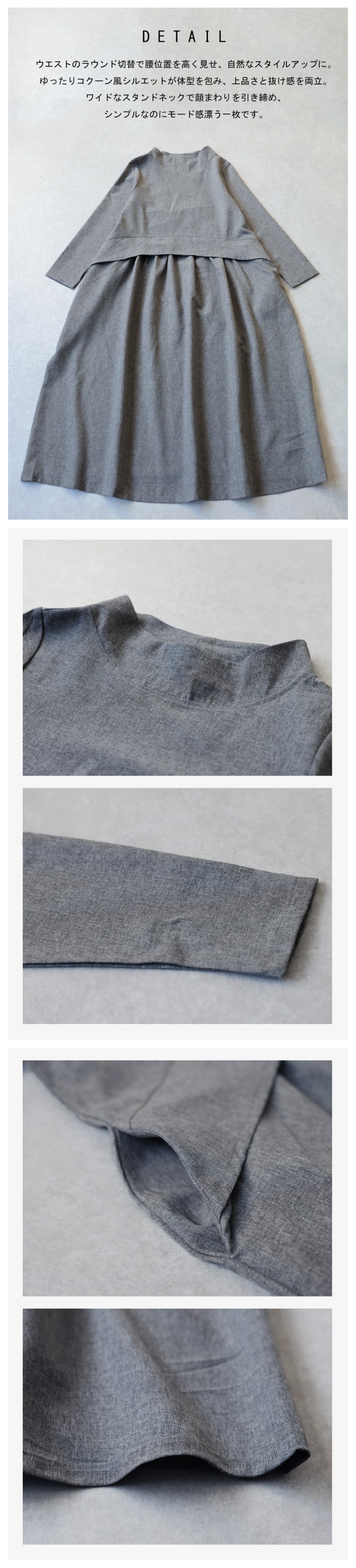 首元は程よく高さのあるボトルネックで、上品かつモードな印象に仕上げました。