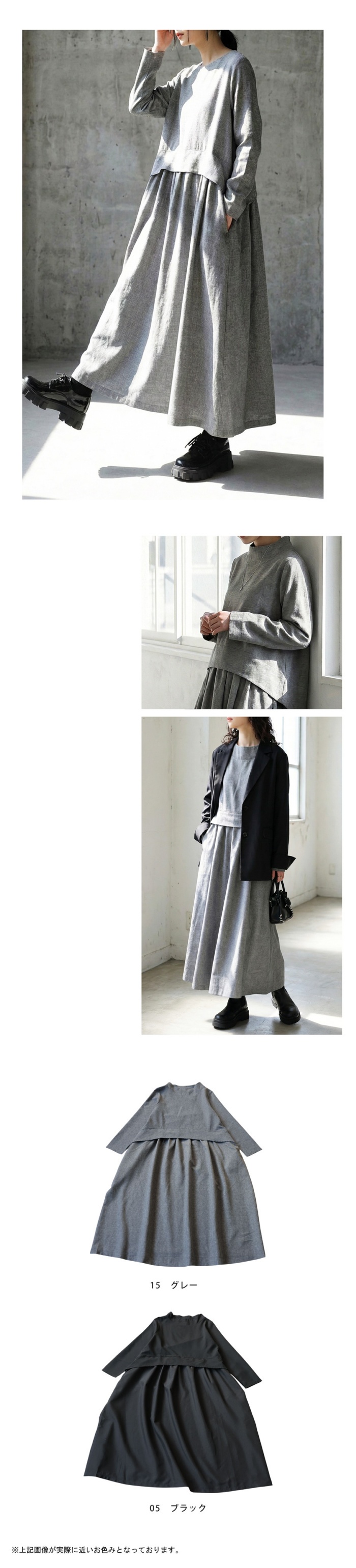 ロング丈感で縦のラインを強調し、洗練された大人の雰囲気を演出。