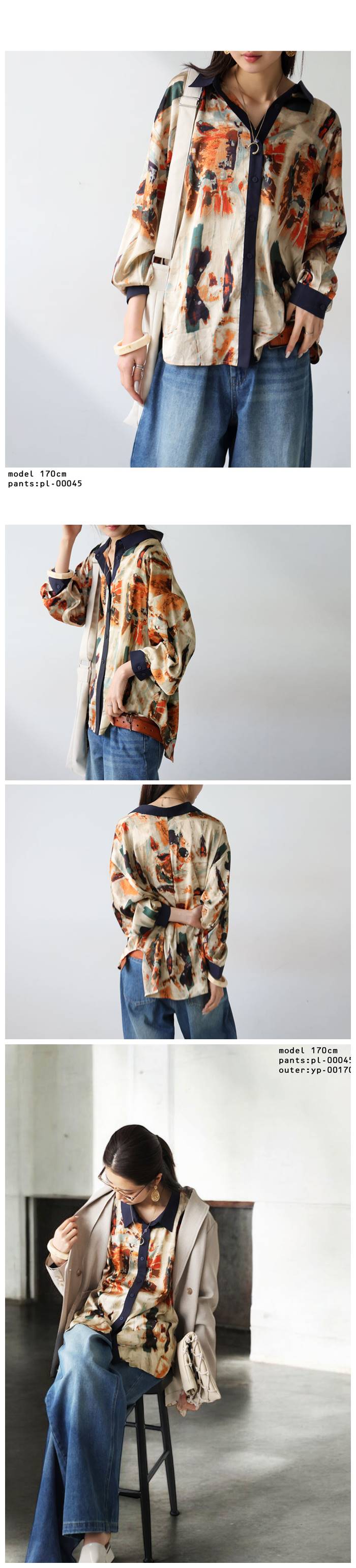 【検索ワード】アート柄シャツ シャツ レディース トップス 長袖 ニュアンス柄 アート柄 柄シャツ 柄 レギュラーカラー 襟付き カフス 配色 前開き 比翼ボタン タック 光沢感 ドロップショルダー ゆったり 華やか モダン モード 高級感 体型カバー 細見え 着痩せ 大きめ 大きいサイズ ブラウス デザインシャツ antiqua アンティカ 大人 おしゃれ 10代 20代 30代 40代 50代 60代 春 秋 冬 お洒落 カジュアル かわいい かっこいい あんてぃか