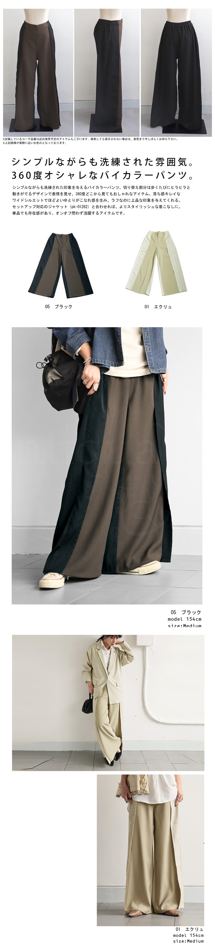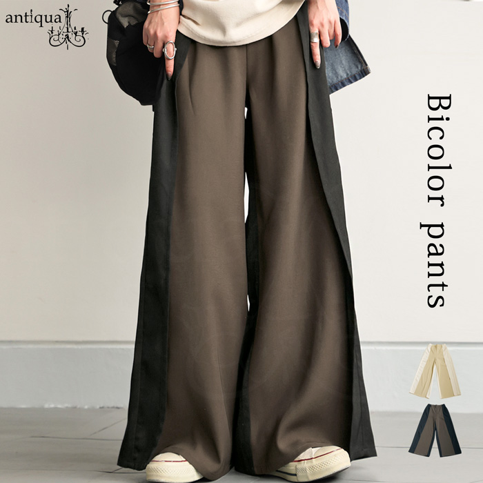 Please check the notes for this item and check this shipping note before you buy.【検索ワード】バイカラーパンツ パンツ レディース ボトムス ロング 長ズボン ロングパンツ セットアップ 無地 配色 切り替え 切替 ドッキング ワイドパンツ ワイド 前フラット 後ろゴム ポケット付き ゆったり サイズ展開 Medium Large シンプル きれいめ 上品 落ち感 高級感 モード 体型カバー 細見え 着痩せ 大きめ 大きいサイズ 結婚式 二次会 パーティー オケージョン 入卒 入園式 卒園式 入学式 卒業式 セレモニー 発表会 謝恩会 晴れの日 ハレの日 antiqua アンティカ 大人 おしゃれ 10代 20代 30代 40代 50代 60代 春 夏 秋 冬 オールシーズン お洒落 カジュアル かわいい かっこいい あんてぃか