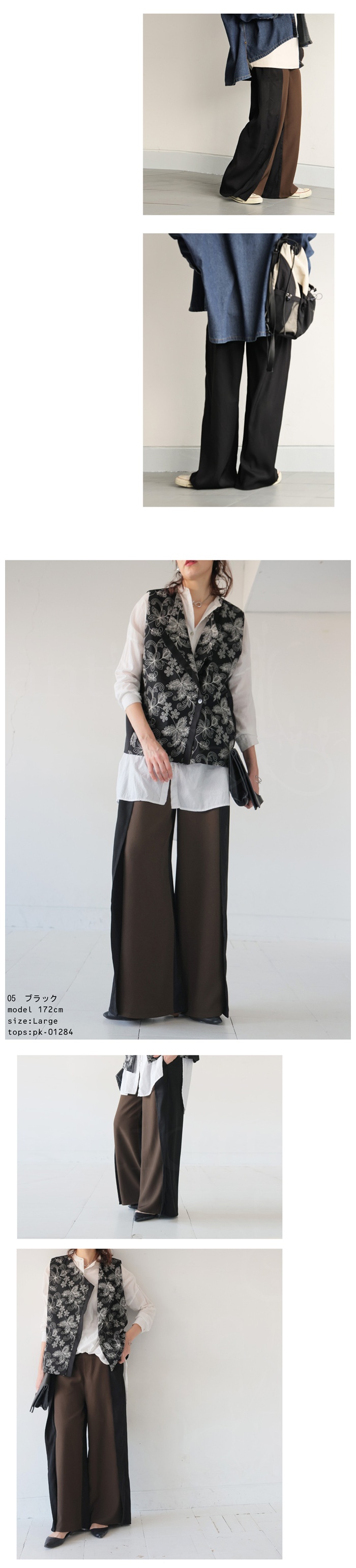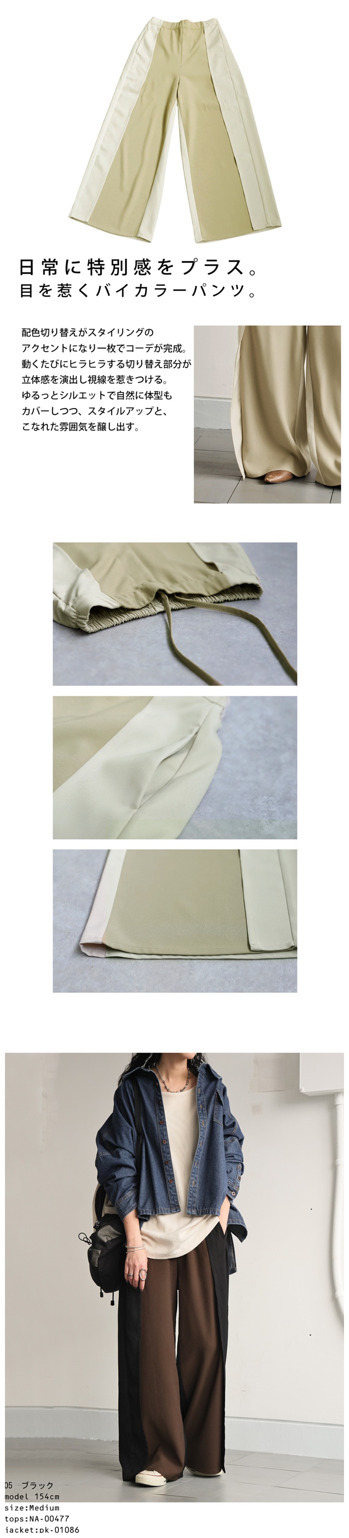 【検索ワード】バイカラーパンツ パンツ レディース ボトムス ロング 長ズボン ロングパンツ セットアップ 無地 配色 切り替え 切替 ドッキング ワイドパンツ ワイド 前フラット 後ろゴム ポケット付き ゆったり サイズ展開 Medium Large シンプル きれいめ 上品 落ち感 高級感 モード 体型カバー 細見え 着痩せ 大きめ 大きいサイズ 結婚式 二次会 パーティー オケージョン 入卒 入園式 卒園式 入学式 卒業式 セレモニー 発表会 謝恩会 晴れの日 ハレの日 antiqua アンティカ 大人 おしゃれ 10代 20代 30代 40代 50代 60代 春 夏 秋 冬 オールシーズン お洒落 カジュアル かわいい かっこいい あんてぃか