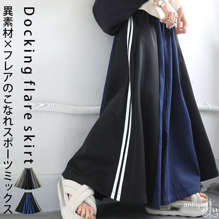 Please check the notes for this item and check this shipping note before you buy.【検索ワード】デニム切り替えフレアスカート スカート レディース ボトムス ロング 無地 切り替え 異素材 デニム ドッキング Aライン フレアシルエット 配色 配色ライン スポーティー ゆったり ロングスカート ボリューム感 ウエストゴム 内紐 調節可能 綿 コットン ポケット付き 大きめ 大きいサイズ ブラック 黒 デニムブルー ブルー 青 antiqua アンティカ 大人 おしゃれ 10代 20代 30代 40代 50代 60代 春 夏 秋 冬 オールシーズン お洒落 カジュアル かわいい かっこいい あんてぃか