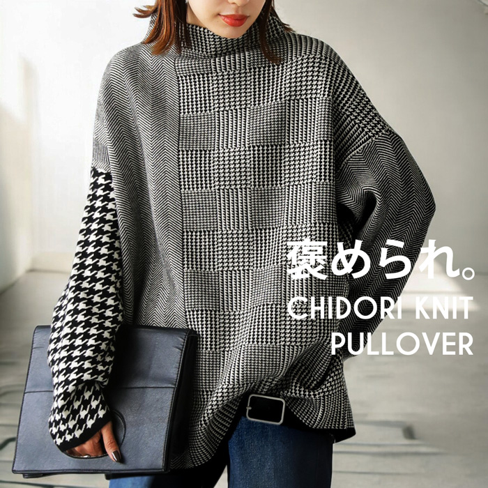 【検索ワード】千鳥柄切替えニット ニット レディース トップス 長袖 きれいめ セーター 柄ニット 柄 切替え 千鳥格子 ヘリンボーン アシンメトリー アシメ ボトルネック ハイネック レーヨン混 もっちり 肉厚 マシュマロタッチ ハイゲージ チクチクしない ゆったり オーバーサイズ 大きめ antiqua アンティカ 大人 おしゃれ 10代 20代 30代 40代 50代 60代 春 秋 冬 お洒落 カジュアル かわいい かっこいい あんてぃか