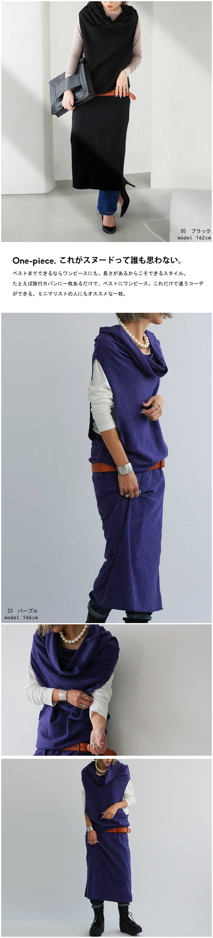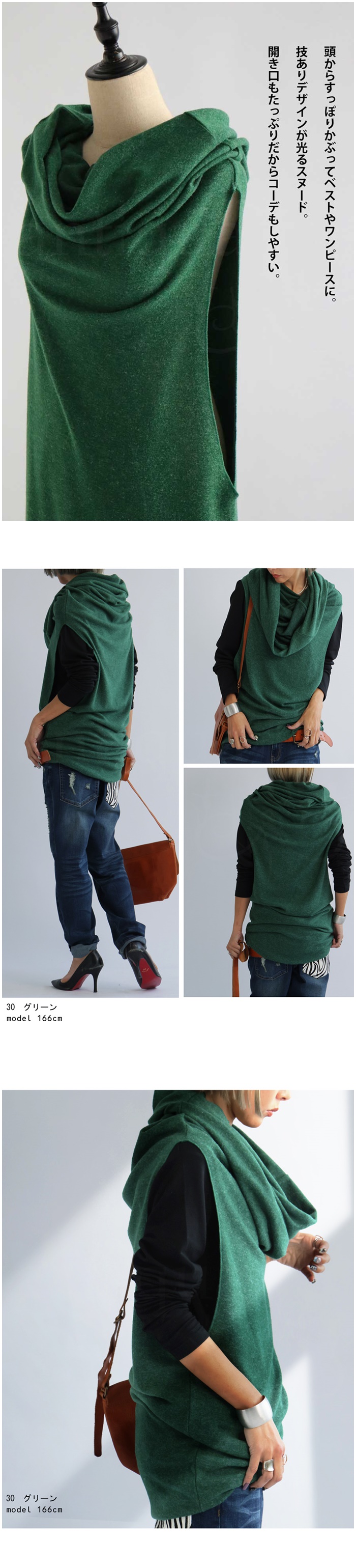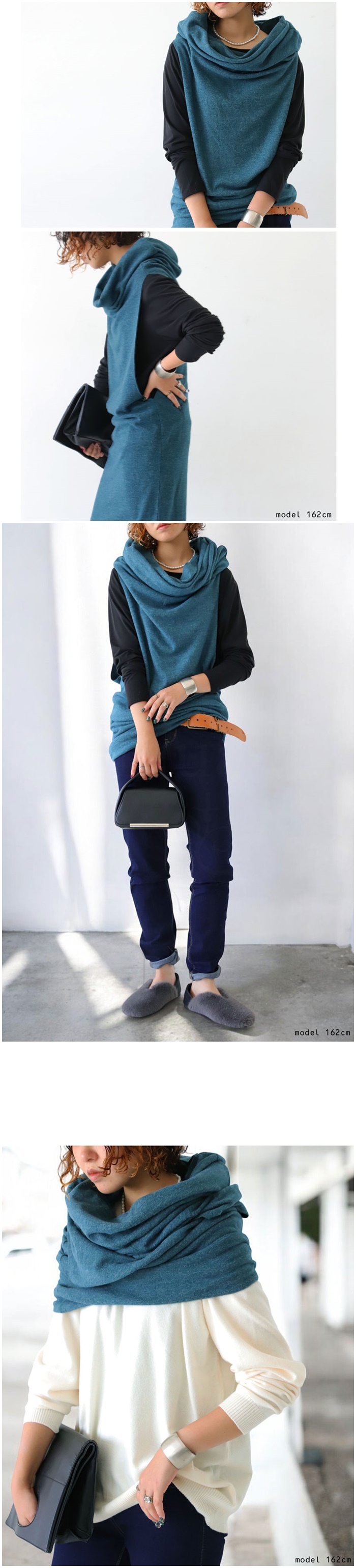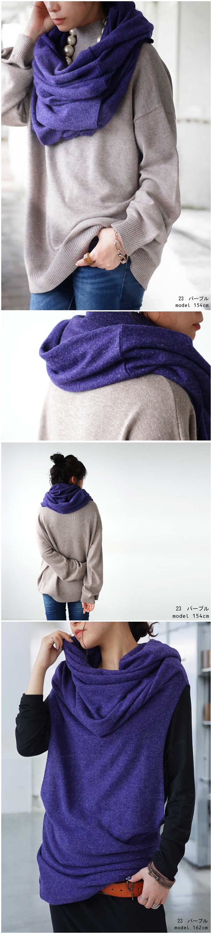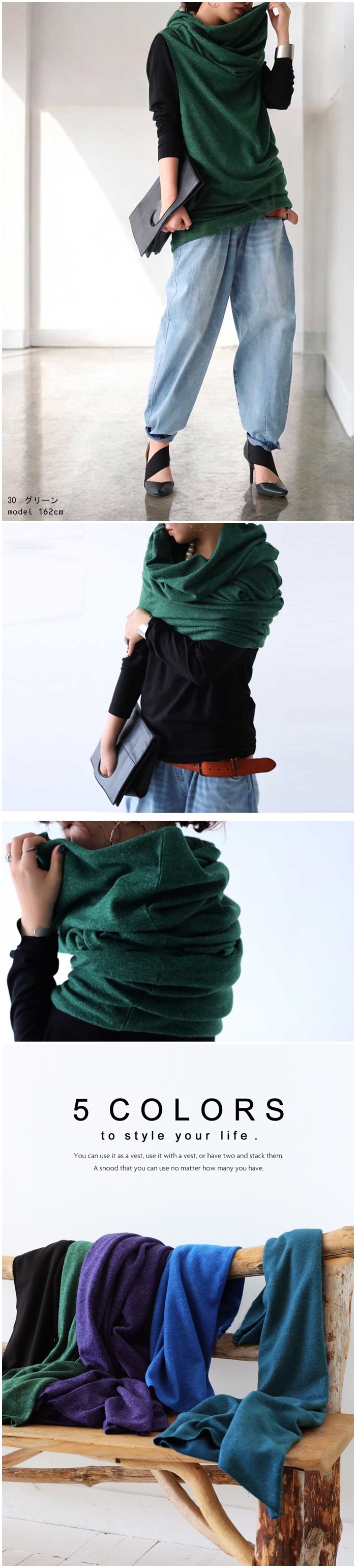 スヌードはもちろん、ベスト・ワンピース・ケープとして使える4WAYスタイルが可能。