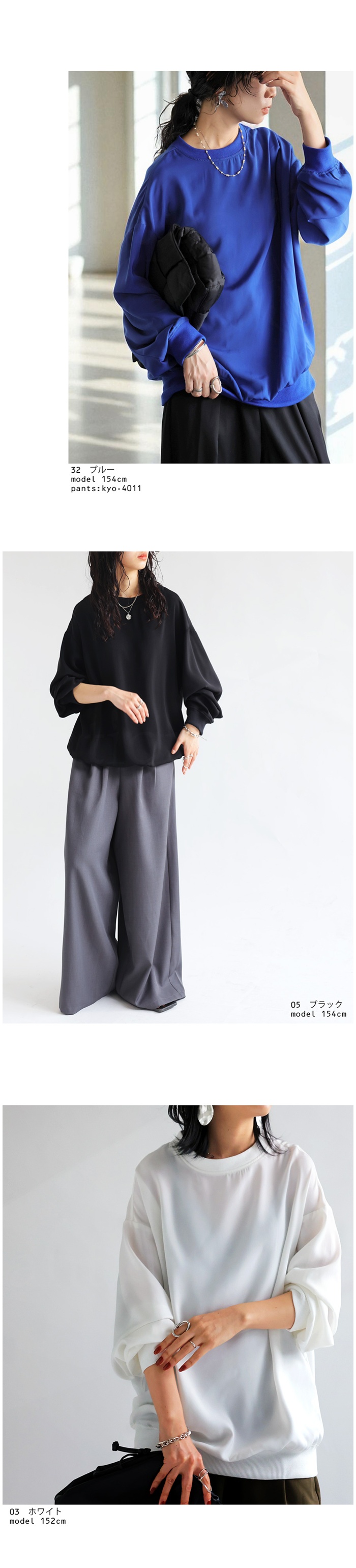 袖丈と裾はリブで切り替えたデザインがアクセントとなり、無地ながら表情のある一枚です。