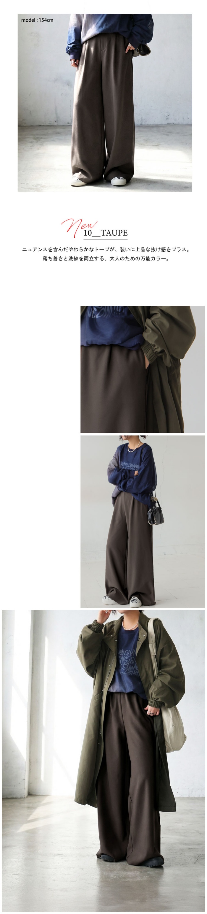 ふんわりとした裏起毛の肌ざわりで、冷え込む季節も暖かく包み込むワイドパンツです。