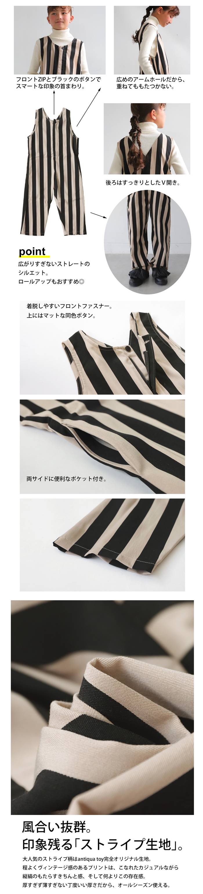 Please check the notes for this item and check this shipping note before you buy.【検索ワード】サロペット ボトムス ロング 子供服 ジュニア ノースリーブ ストライプ柄 ゆったり 柄 レイヤード 重ね着 シンプル ストレート 長ズボン パンツ ヴィンテージ オールインワン オーバーオール つなぎ コンビネゾン サロペ ジャンプスーツ フロントファスナー バックデザイン V開き Uネック バックポケット ポケット付き 親子 お揃い リンクコーデ 親子コーデ ファミリー おそろ オソロ 高学年 中学生 中高生 140cm 150cm 160cm 双子コーデ プレゼント お祝い 出産祝い 春 夏 秋 冬 オールシーズン キッズ 男の子 女の子 ガール ガールズ 通学 お出かけ お洒落 アンティカ antiqua おしゃれ 可愛い かっこいい