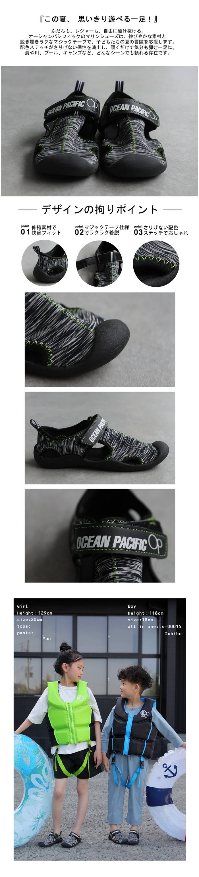 OCEAN PACIFIC(オーシャンパシフィック)らしいデザインと機能性を両立した一足は、ビーチや川遊び、キャンプや水遊びなどのアウトドアレジャーに最適です。