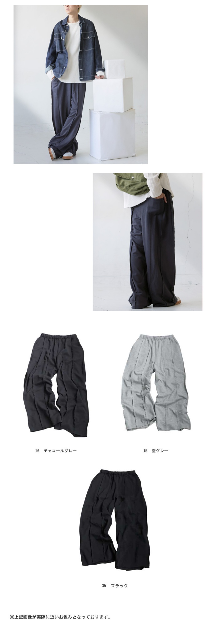 サイドに入ったアウトシームラインが縦のラインを強調し、ワイドなシルエットに自然な立体感をプラス。