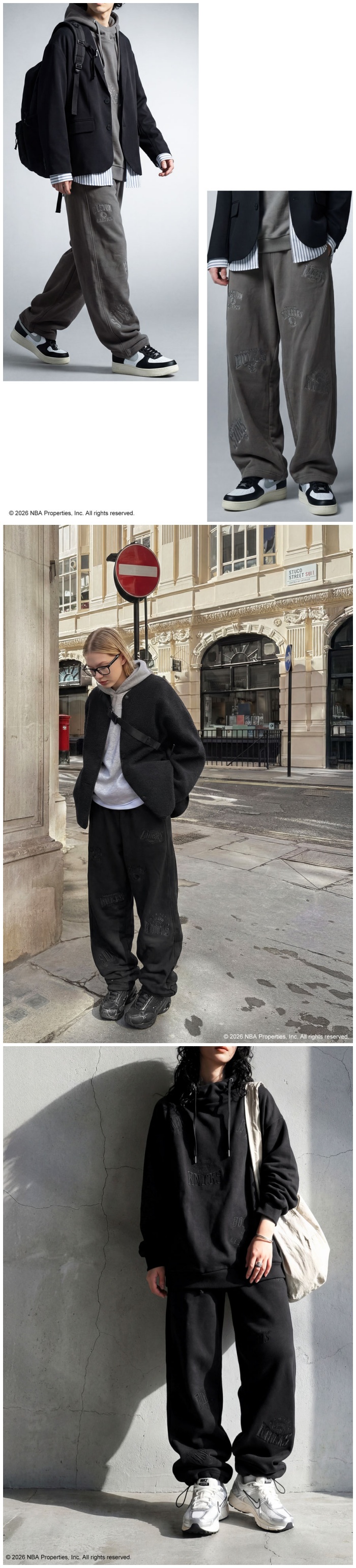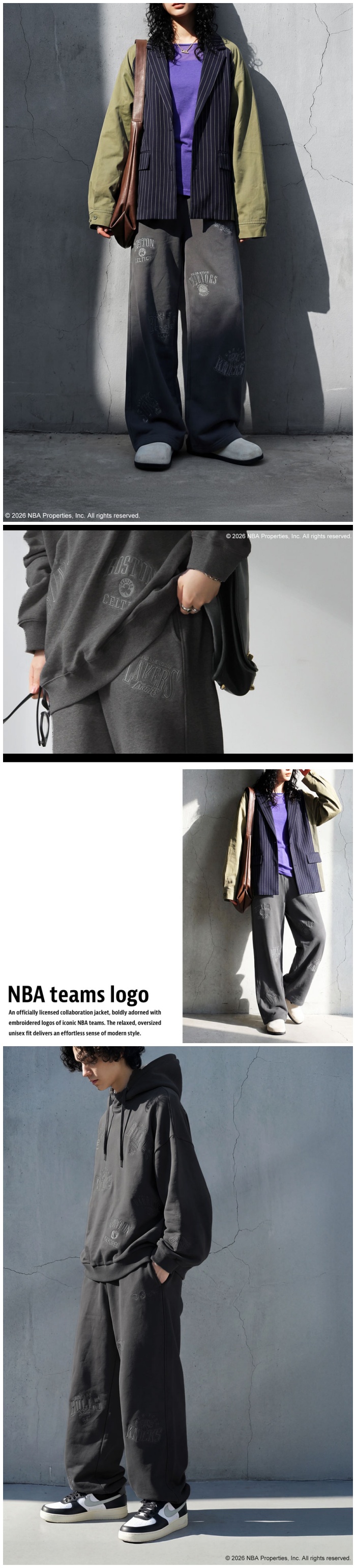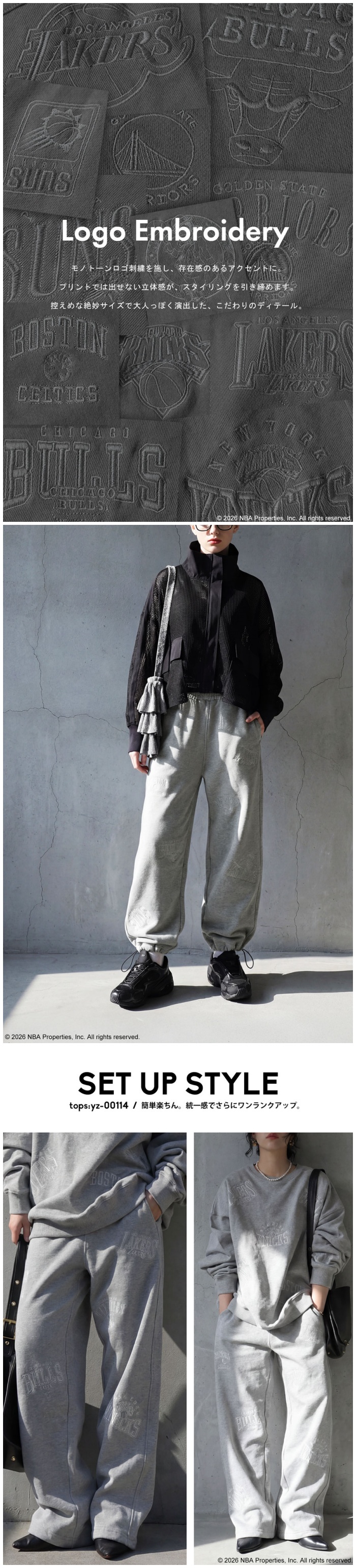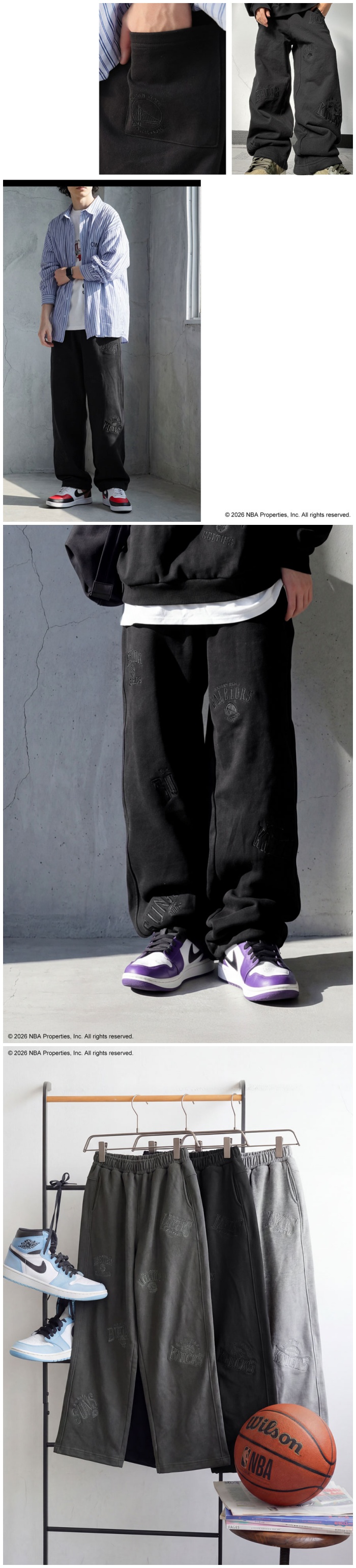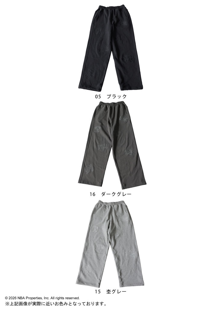 NBA公式ライセンスの刺繍ロゴを大胆に施した、綿100%のスウェットパンツ。