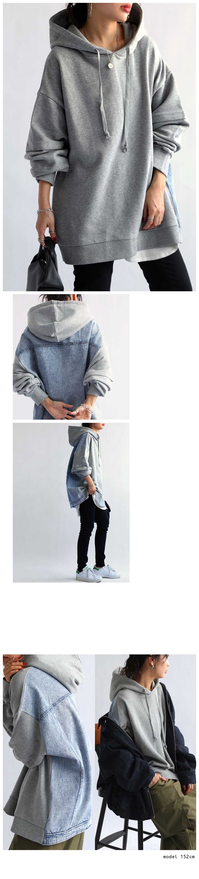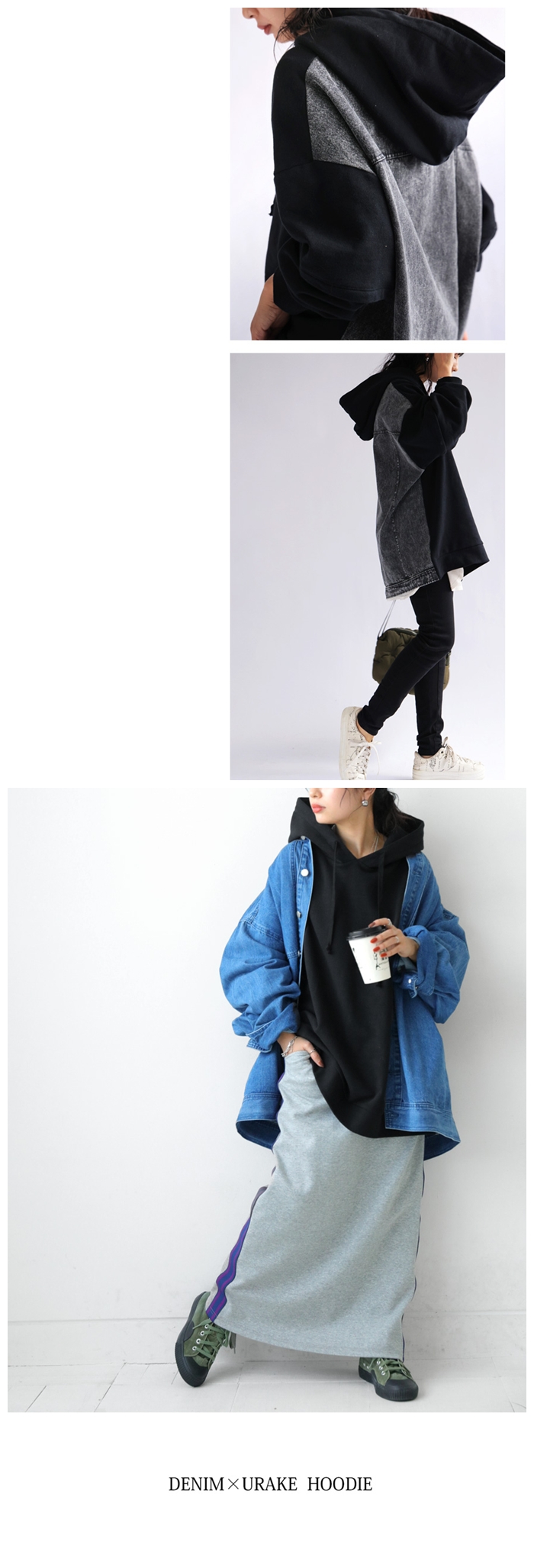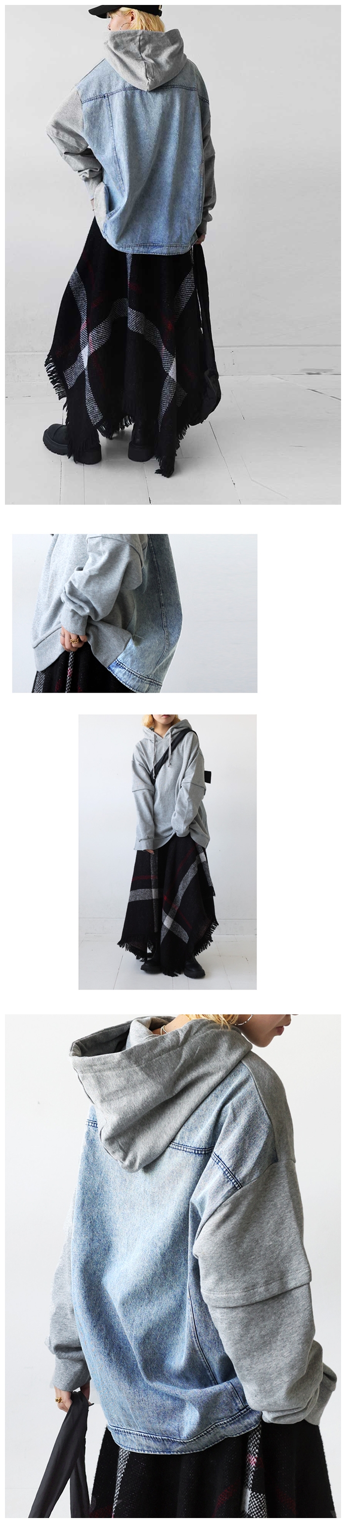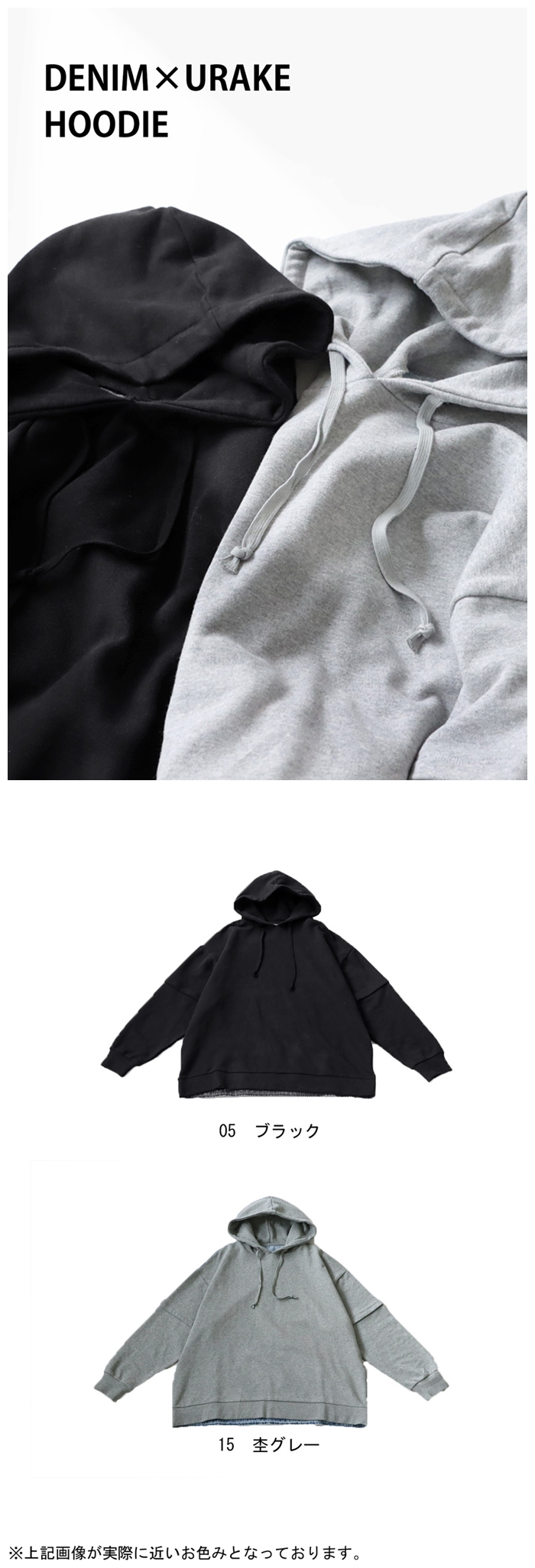 前身頃はミニ裏毛、後ろ身頃はデニム素材で仕上げ、どこから見てもお洒落な印象に。