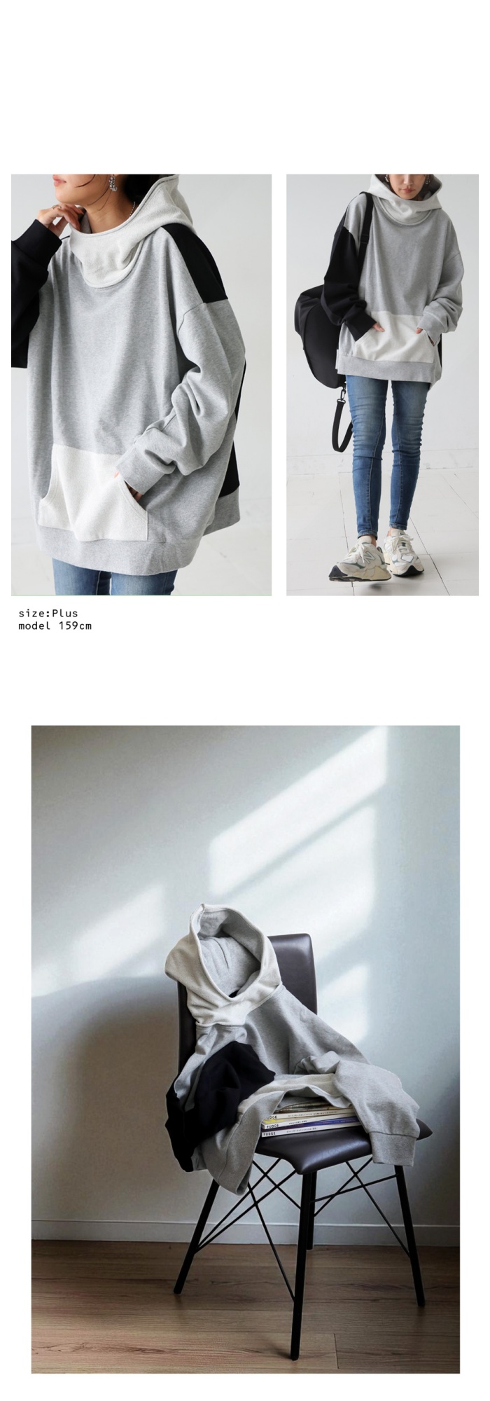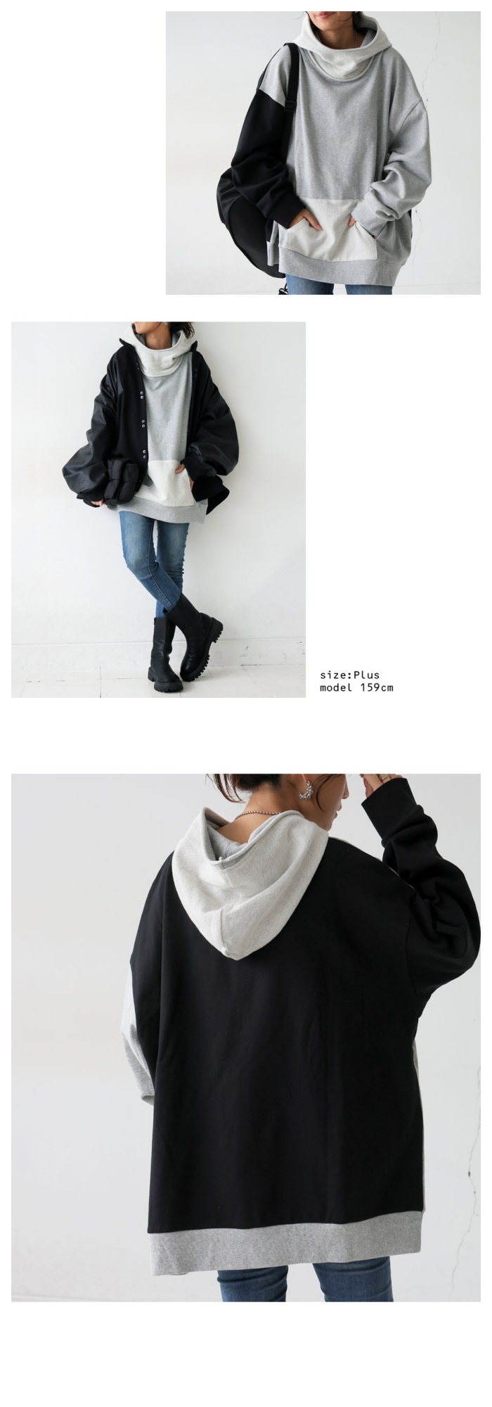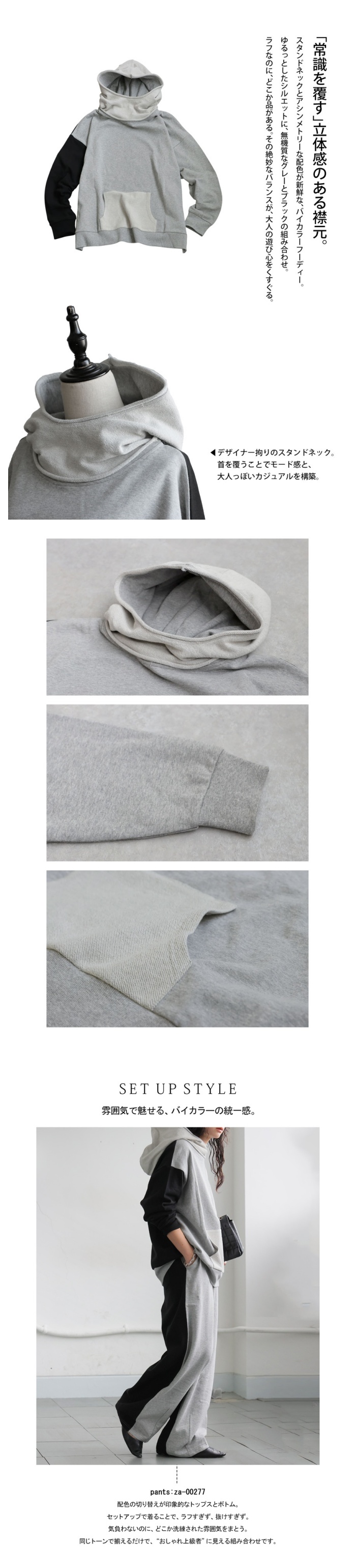 リラックス感とおしゃれ見えを両立した、裏毛素材の配色フーディー。